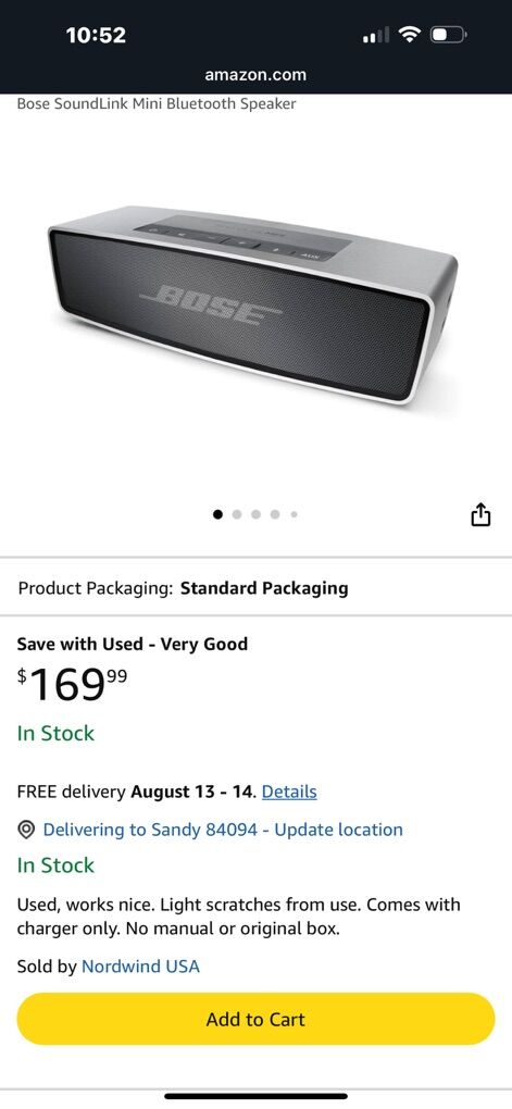 Awesome Bose sound link mini Bluetooth speaker! These retail for 169.00 or more locally and online now as shown in photos! A bit scuffed up but works awesome! Price reflects scratches ! Don’t pay retail prices, call Dustin instead at 801-205-3404, I need it gone!
