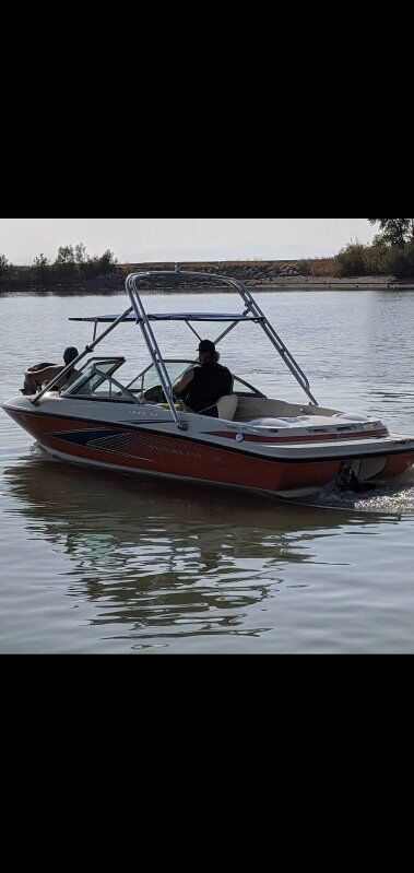 This is a 2007 Maxum MX1800 18 foot inboard open bow boat.