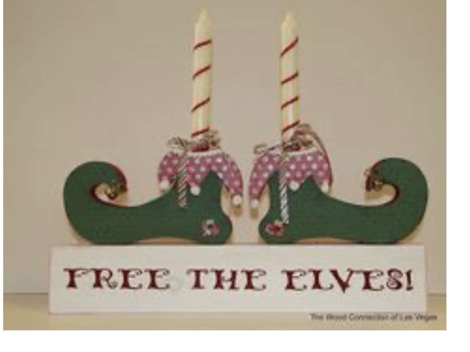 2 Wood Elf Shoe Kits. You will need paper or paint to decorate the raw wood. Last picture is idea of how to decorate. Stick is provided for legs or you can replace the wood legs with candles. The kits are made by The Wood Connection.