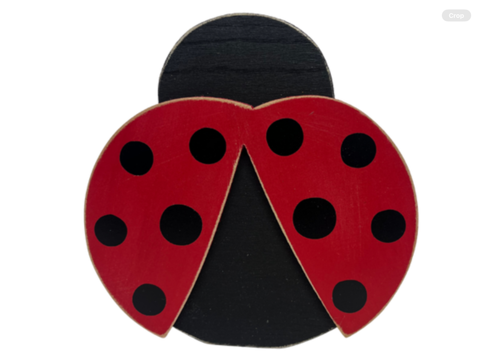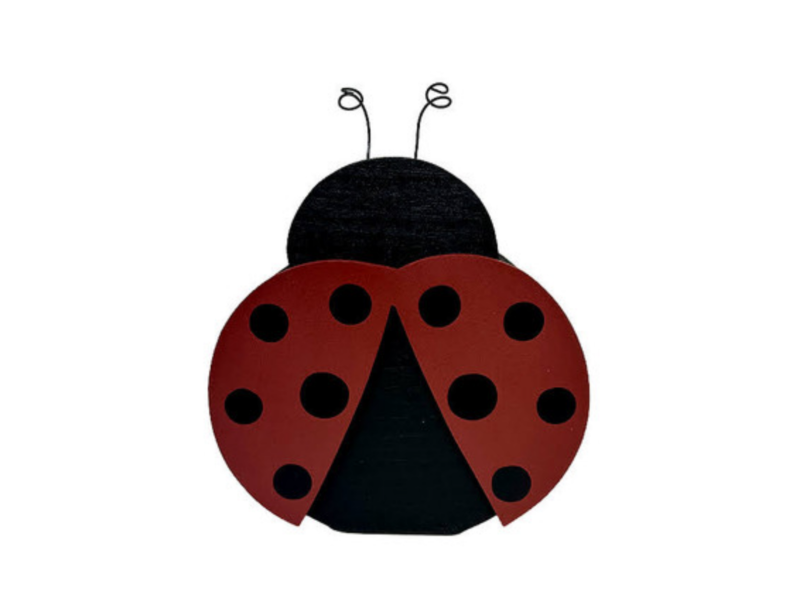 Lady Bug Unfinished Wood Project, New, The Wood Connection. Last 2 pictures gives an idea of how to paint. The holes in the top of head are about the size of a heavy clothes hanger wire.
