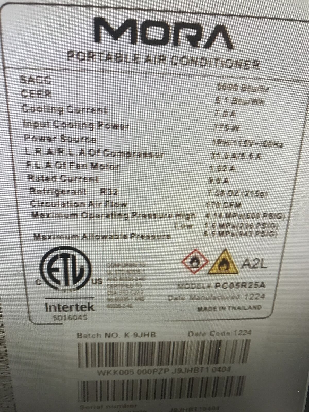the mora is 8000btu is just the ac unit no remote no hoses for 150.00