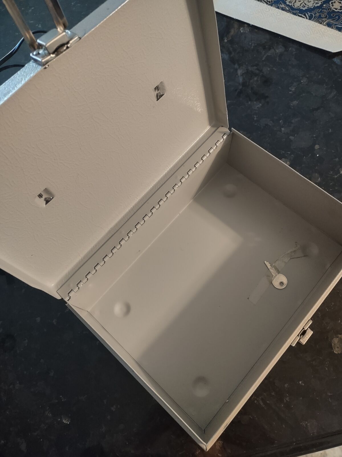 VenmoCASH BOX WITH KEY AND LOCK. Does not have inner tray. 11" x 8" x 4". Gray color. $7 Cash/Venmo. In Sandy. Great for first level fire protection for important documents, etc. 801-201-5350. See both photos.