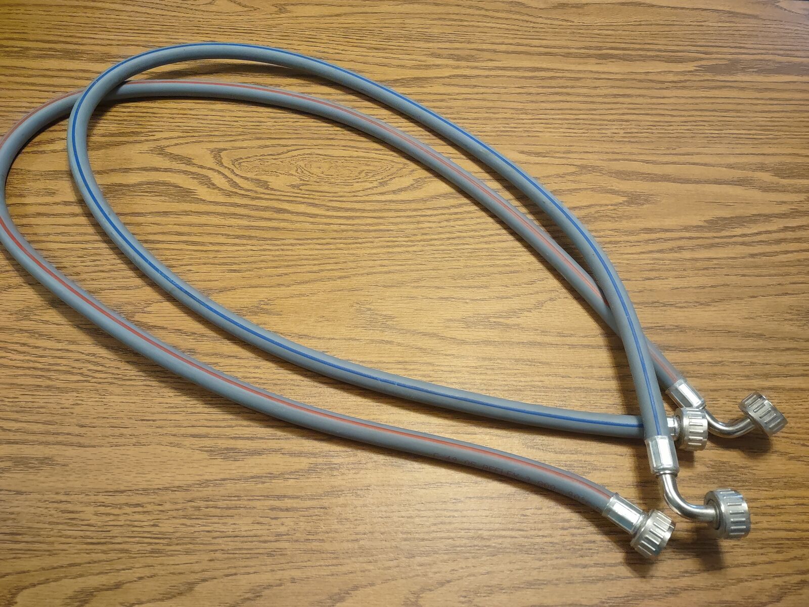 Venmo2-HOSE SET OF 5 FT LONG HOSES FOR WASHING MACHINE SUPPLY LINES. NEW. BOTH ENDS HAVE FEMALE ENDS AND ONE END HAS THE 90 DEGREE CORNER. Gray hoses are marked with either the red or the blue line so you'll know the hot and cold lines easily. See all 3 photos. Hose set retails at Home Depot for $40. Set is yours for $25 Cash/Venmo. In Sandy. 801-201-5350.