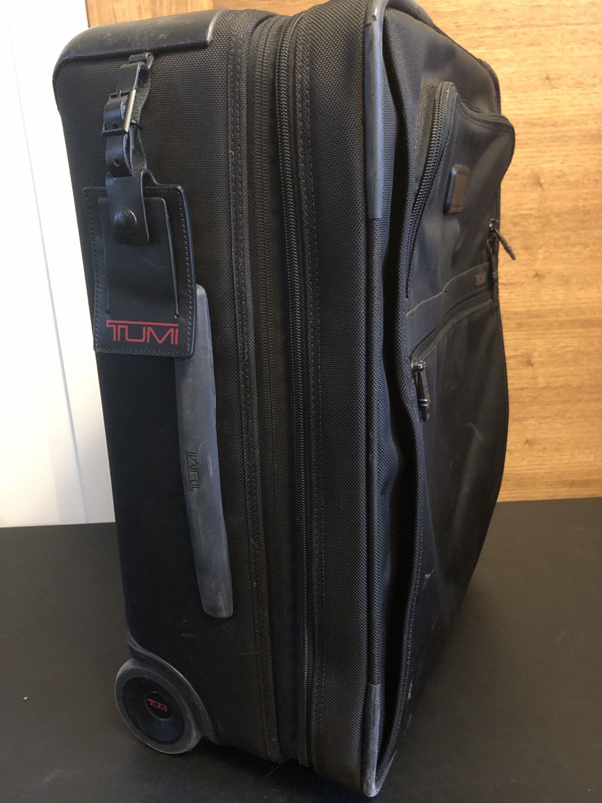 Black Color 2 Wheel Continental Model 22021D2. Very well taken care of in Clean Excellent Condition no rips holes or tears. No Funny Smells. Expandable by 2 inches. Includes ID holder. Approximately 16”W x 21.5”T x 8-10”D. Small enough to carry on, check with your airline to make sure.