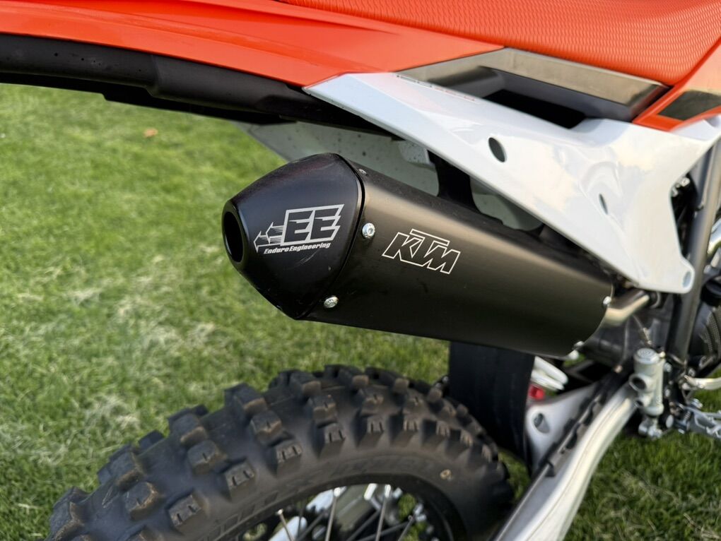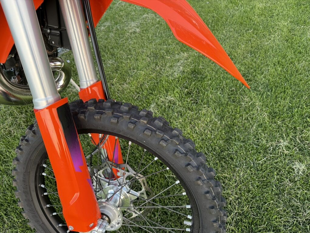 Featuring a redesigned frame, tool-free adjustable WP XACT closed-cartridge front forks, and WP XPLOR PDS rear shock, this KTM tackles any terrain with precision. The Throttle Body Injection (TBI) system ensures smooth, adaptive power, paired with a 6-speed transmission and electric starter for effortless control. Brembo hydraulics and lightweight GIANT alloy wheels with Dunlop MX33/AT81 tires deliver top-tier grip and durability. Updated bodywork enhances rider comfort, and the easy-access air filter makes maintenance a breeze.