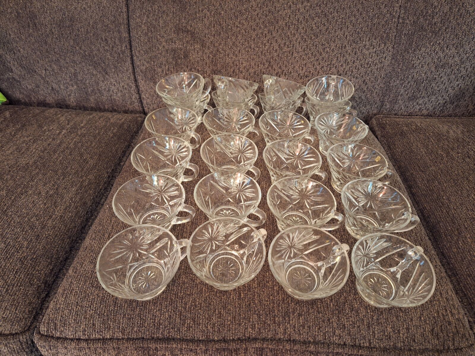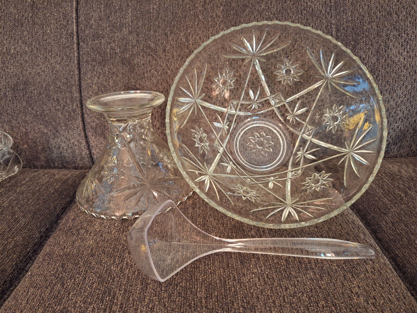 Star of David Punch Bowl with stand and 24 cups. No box. No chip or cracks. Very good condition. Please leave message if no answer. Will return call asap. Land line, please do not text.