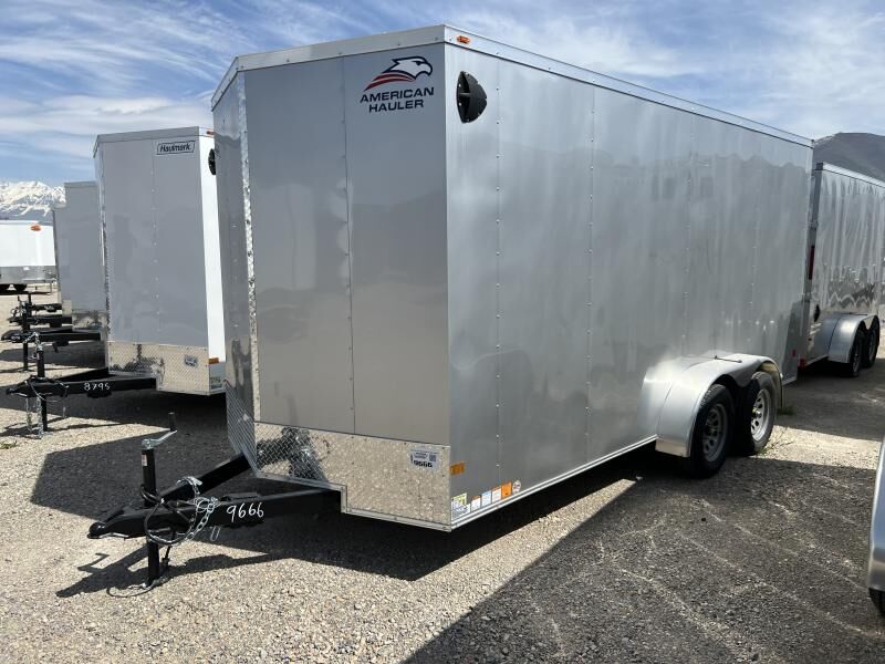 Stock #: AH2115 Trailer Specs: Color: Silver .030 Aluminum Overall: Length: 19'8" Width: 8'6" Height: 8'9" Interior/Bed: Length: 16' Box + V-Nose Width: 6'8" Height: 7'0" Door/Ramp: Rear Spring Assist Ramp Door (Width: 78" x Height: 79") Weight: 2.275 lbs. | GVWR: 7,000 lbs. | Payload: 4,725 lbs. Axle(s): (2) 3,500 lb. Dexter Spring Electric Axle w/ EZ Lube Hubs Tire/Wheel: ST205/75R15 | Load Range C Coupler: Type: Bumper Pull | Size 2-5/16" | 7-Way 12V Connector 16" OC Vertical Posts | 16" OC Crossmembers | 24" OC Tube Roof Bows 1 Year Limited Warranty Standard Features: 2"x4" Tube Main Frame 1-Piece Aluminum Roof 16" Starbright Stoneguard 3/8" PlexCore Sidewall Liner 3/4" PlexCore Flooring (4) 5,000 lb. Floor D-Rings 32" Side Door w/ Bar Lock Flow-Thru Sidewall Vents 12v Interior LED Dome Light 12v Exterior LED Lighting Smooth Aluminum Radius Fenders Undercoated Chassis Deluxe Package .030 Aluminum Exterior 3/8" PlexCore Sidewall Liner (4) 5,000 lb. Floor D-Rings Common Addons: Wall Mounted Spare Tire 10 ft. E-Track Stick Recessed 2,500# D-Ring Additional Colors Available Call for Availability WASATCH TRAILER SALES - LARGEST TRAILER SELECTION IN UTAH Springville: (801) 528-1581 | 1180 S 2000 W, Springville UT, 84663 View More Inventory: www.wasatchtrailer.com