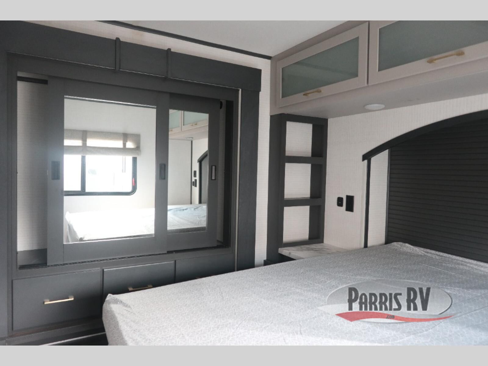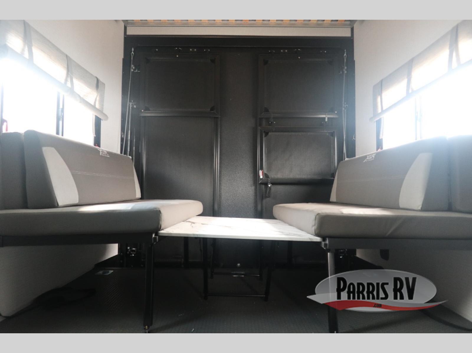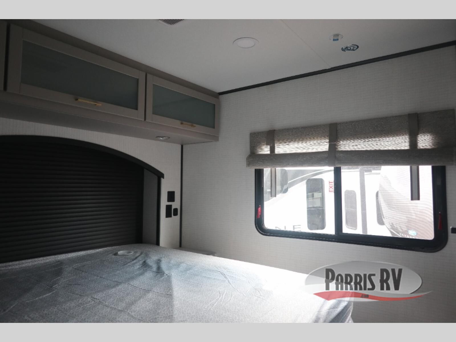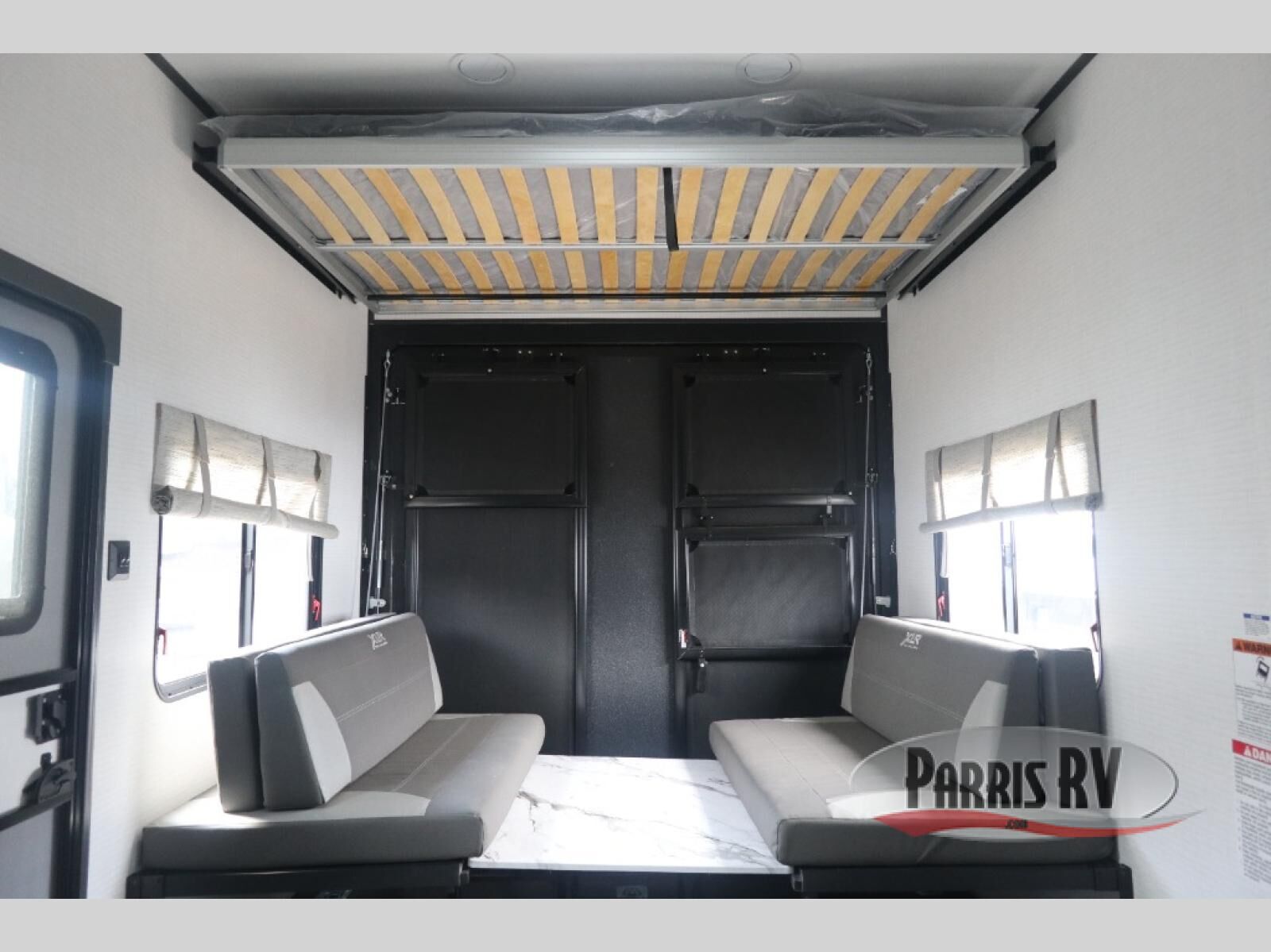 You'll love every minute spent in this double slide out, double entry fifth wheel! Your guests will have the 13' 6" separate garage all to themselves once the toys are unloaded, and here you'll find dual sofa sleepers with a Euro queen bed above. There is also a removable dinette table where you can enjoy a cold drink at when you have the 1,500 lb. capacity patio deck set up! Head to the combined kitchen and living area to relax on the sofa slide out while the cook prepares dinner. There is also a hidden pantry here you are sure to appreciate! The dual entry bath will create a front master bedroom, complete with a queen bed, dual nightstands and wardrobes, plus a wardrobe slide out for added storage and space!