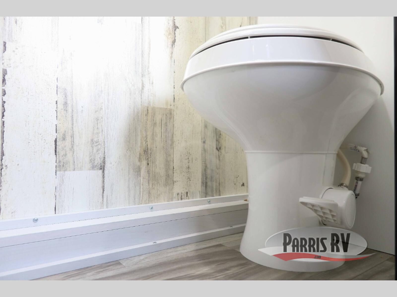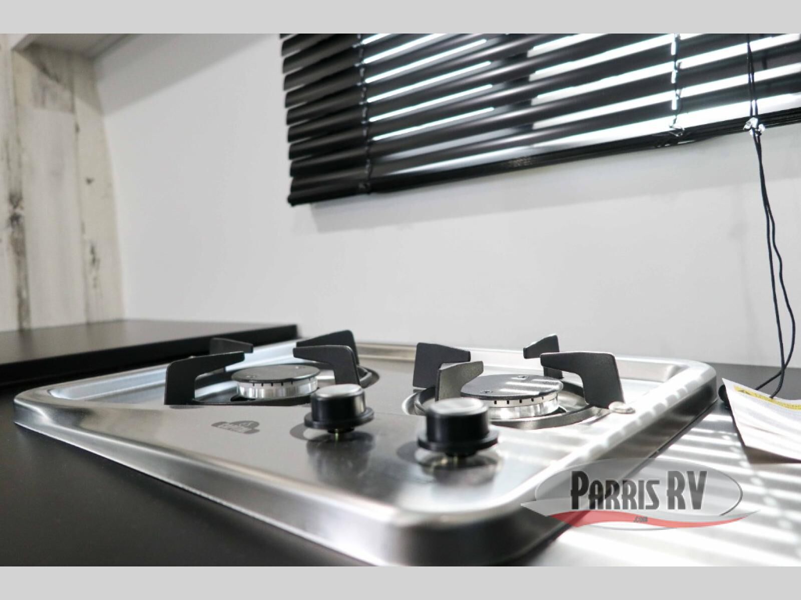 Pack your bags and head off on adventure in this lightweight travel trailer for two! Once you've unloaded your bags, you can set up the 7'6" awning, then head inside to make lunch on the two burner stainless steel stovetop. There is also ample counter space in the rear kitchen, plus a 3 cu. ft. 12V refrigerator to keep your food fresh. This unit also includes a private toilet for added convenience!