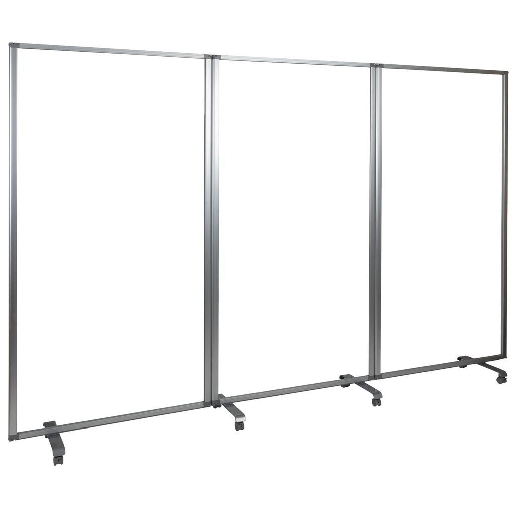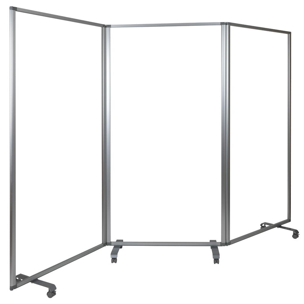 Flash Furniture Raisley Mobile Freestanding Clear Room Divider Partition Portable Roll Up Banner Sneeze Guard for Offices, Restaurants, Lobbies and Other Public Areas.