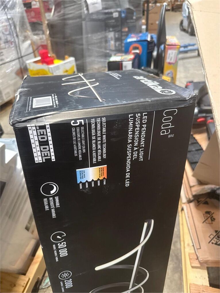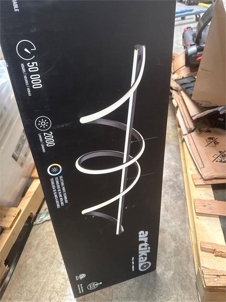 Matte black finish; Integrated LED lights; 5 colour changing presets; Adjustable height; No bulb required; Dimmable (compatible with most LED dimmers); Brightness: 2,000 lumens; Lifespan: 50,000 hours; Colour temperatures: 2700K, 3000K, 3500K, 4000K, 5000K; Power: 24 Watts; Continuous dimming from 100% to 20%; Dimensions: 10.63 in. X 36.02 in. X 80.71 in.
