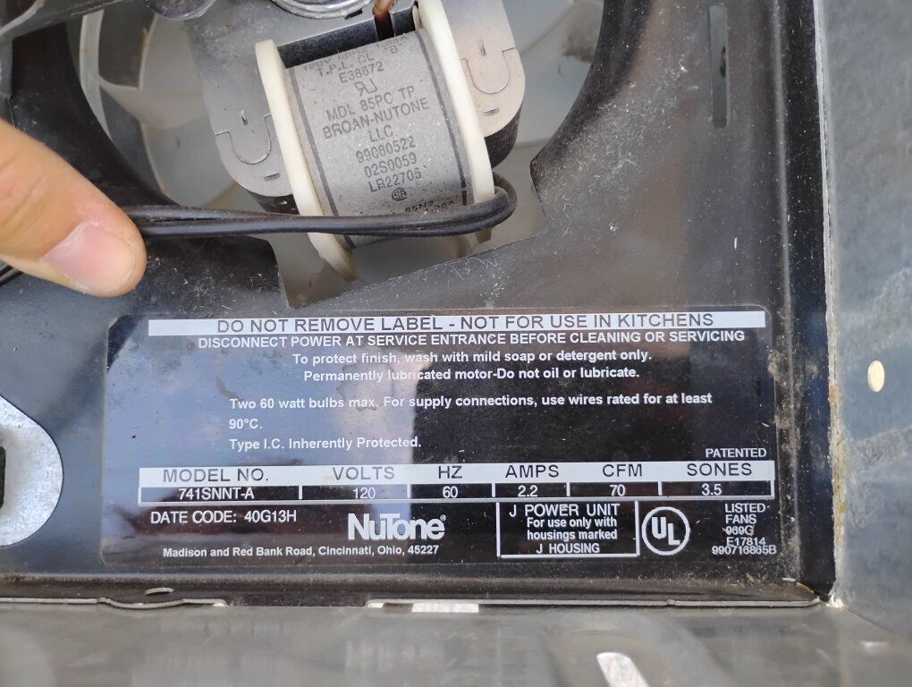 Venmo(Price reduced on 12/9) Up for sale is a Nutone J Power bathroom exhaust fan Unit Listed HVI Certified Model # 741SNNT-A, 120 Volts 60 HZ, 2.2 AMPS, 70 CFM, 3.5 Sones measuring 11" x 8.25" and 6" tall.