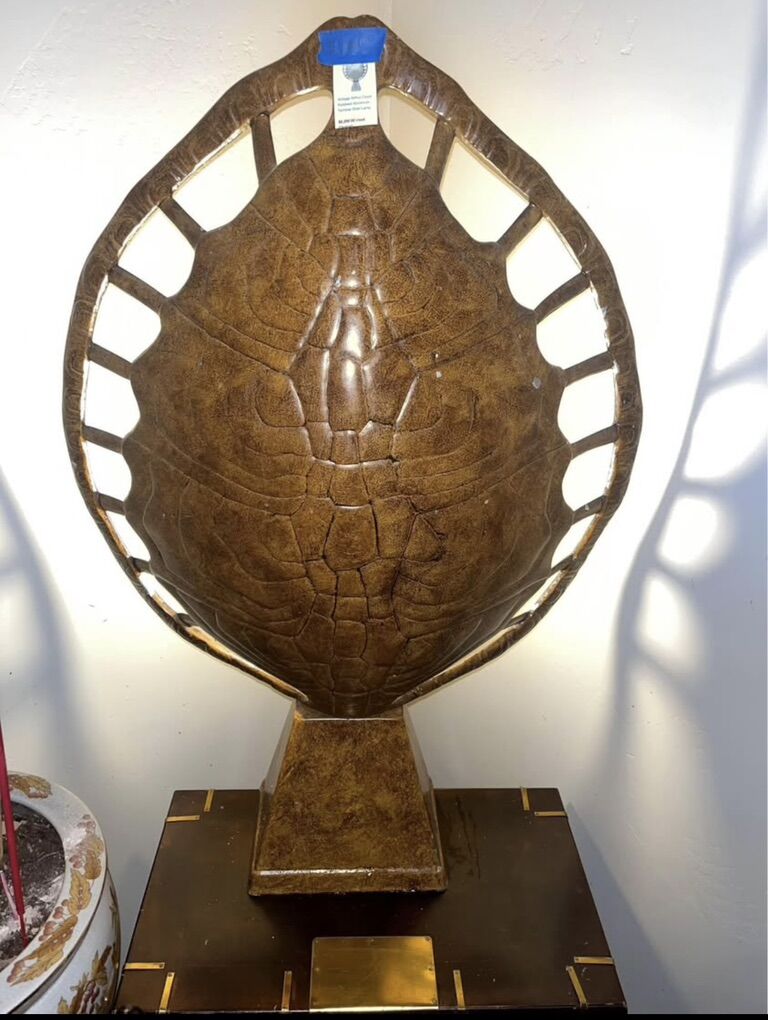 ZelleArthur Court tortoiseshell Rare MCM Lamp Made of aluminum this lamp is rare in that it still has the original paint but it’s become popular to strip the paint off revealing the aluminum sculpture tortoise shell. Just lowered the price. Willing to negotiate. Worth $1300