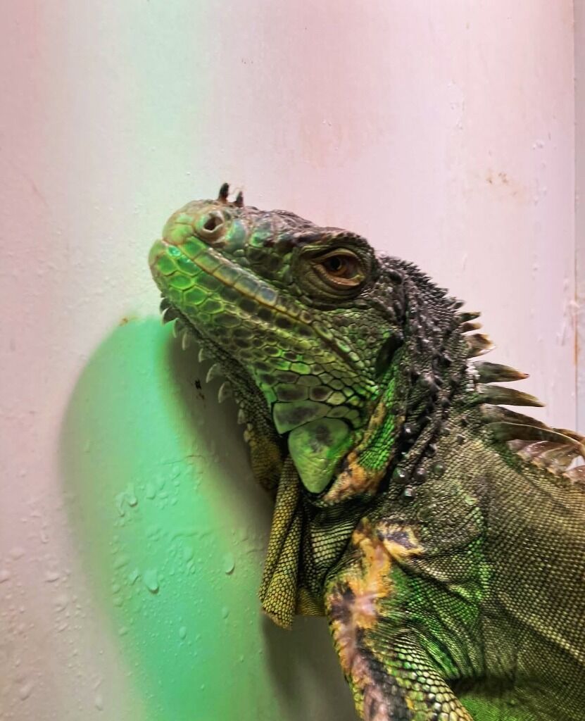 Meet Ozzy! She is an adult green iguana looking for an experienced reptile adopter. We don't know Ozzy's exact age as she was found as a stray, but she is nearing full size (around 3 1/2 feet right now). Ozzy is really food motivated and gets excited when her salad arrives! She is starting to feel more comfortable around people and loves getting pets. She has a calm temperament, but it's important that she goes to a home with someone who understands her body language and needs. Please read this care guide before applying, as we do hold our adopters to these standards: https://reptifiles.com/green-iguana-care-sheet/