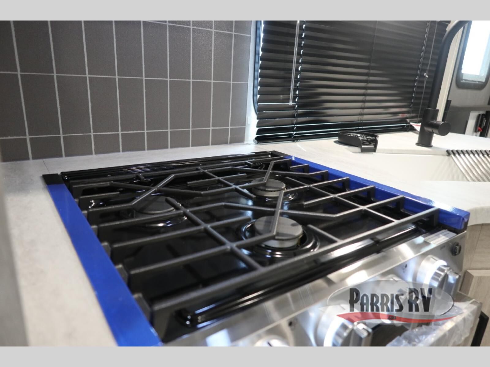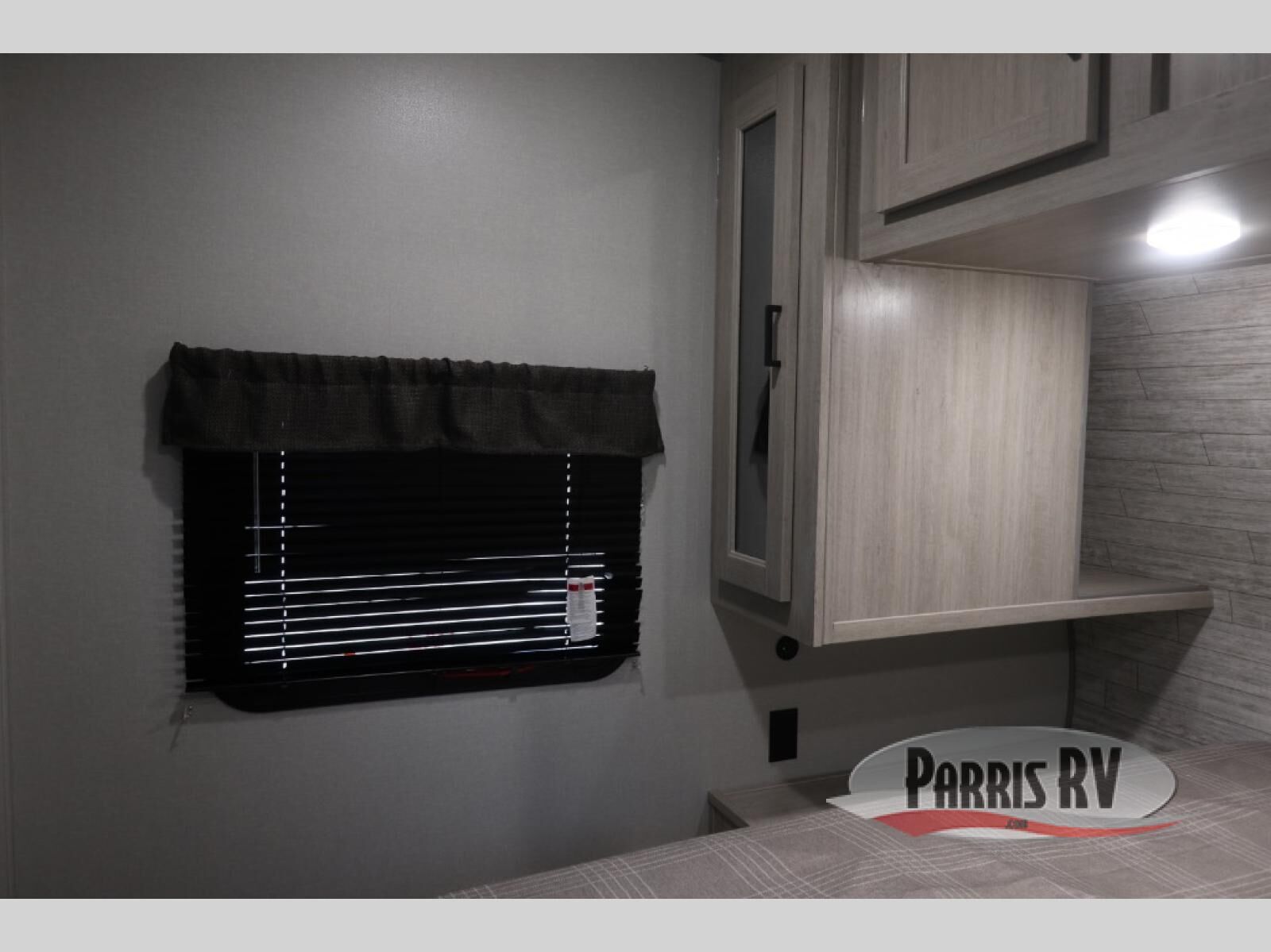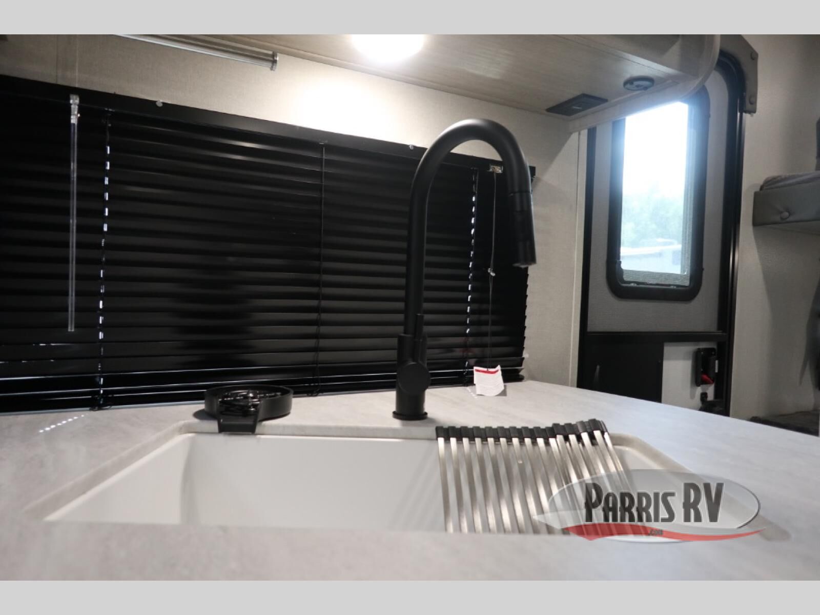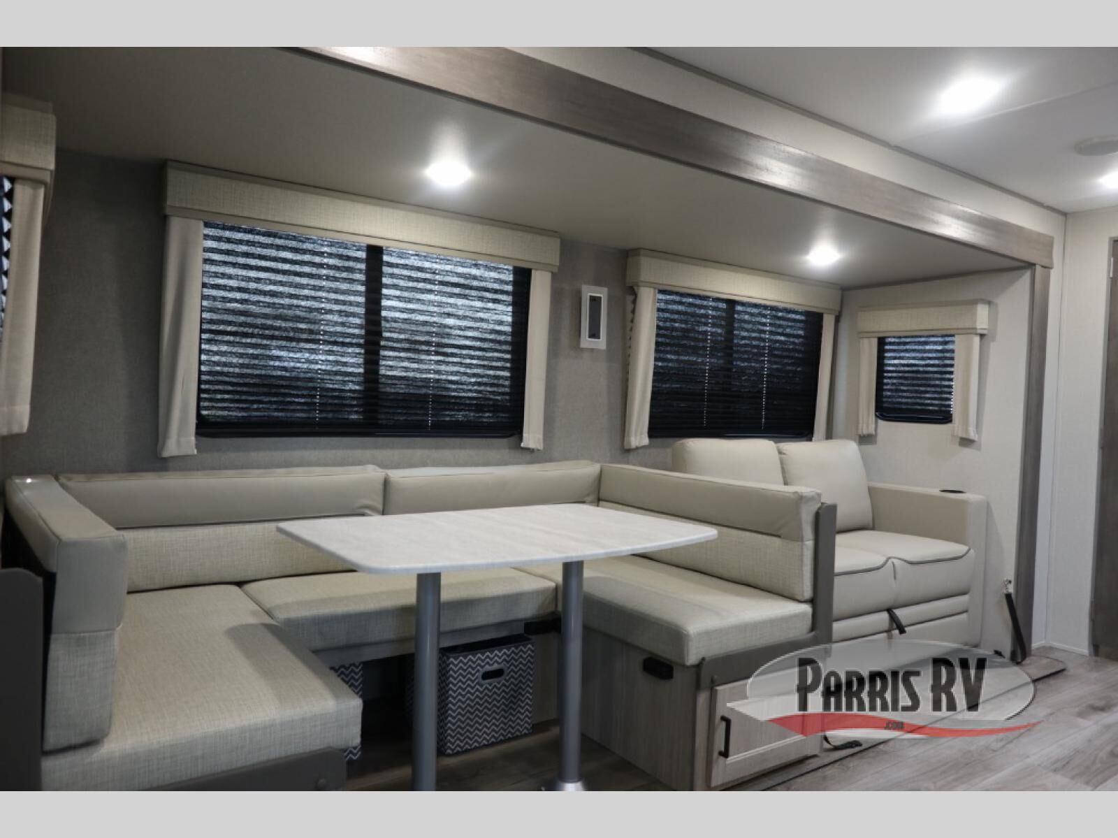 When you enjoy camping with your own accommodations and space for the whole crew, hitch this trailer up and head to the campgrounds! After loading everything easily thanks to the dual entry doors and all the interior and exterior storage, you will have no worries that you left anything behind. The electric awning is easy to set up, like the large slide out, and the awning offers multicolor LED lights to choose from by using the remote. When you are outside the cook might like to make a meal using the outside camper kitchen. The interior kitchen offers full amenities including a pantry, and everyone can enjoy the angled entertainment center. There are double-size bunks with a ladder for the kids and a walk-around queen bed for the owner to sleep on, plus furniture in the living area that doubles as additional sleeping space!