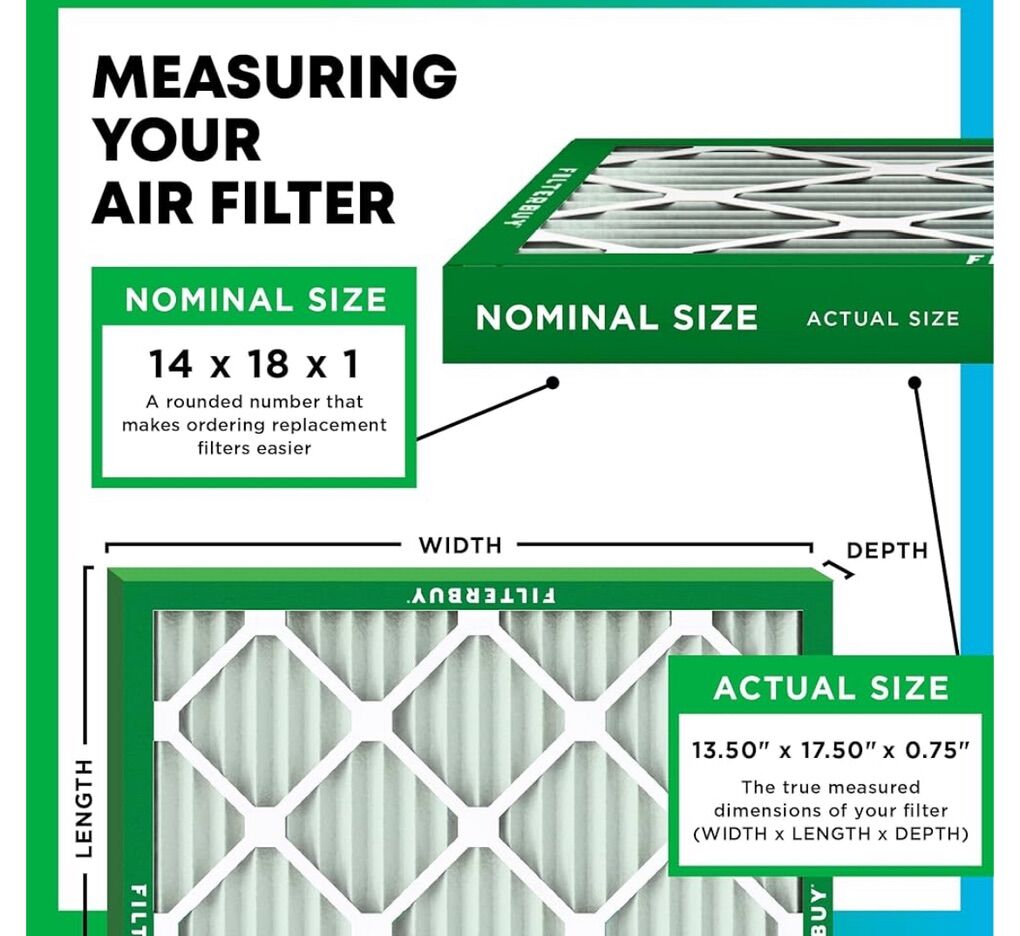 Details: • Size: 14″ × 18″ × 1″ (Actual: 13.5″ × 17.5″ × 0.75″) • Filtration Rating: MERV 8 – ideal for both residential & commercial use • Construction: Electrostatic pleated synthetic media for longer life • Change Interval: About every 90 days (more often for pets/allergies)