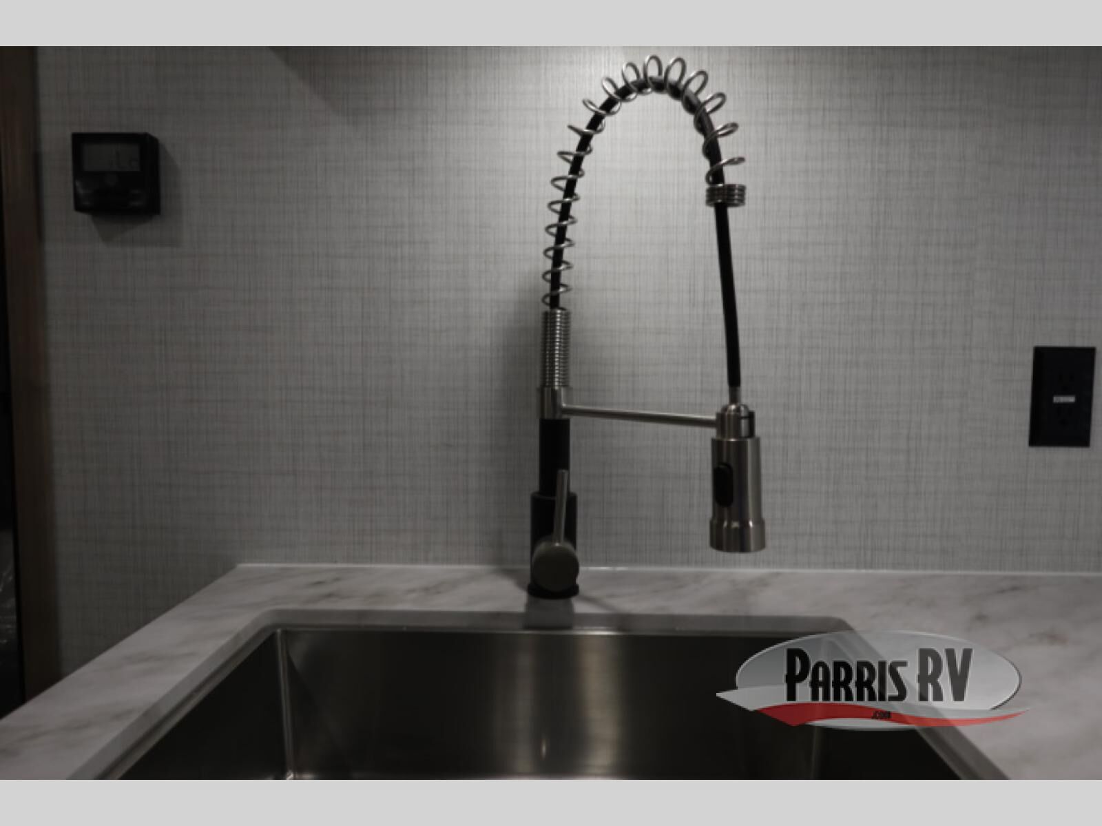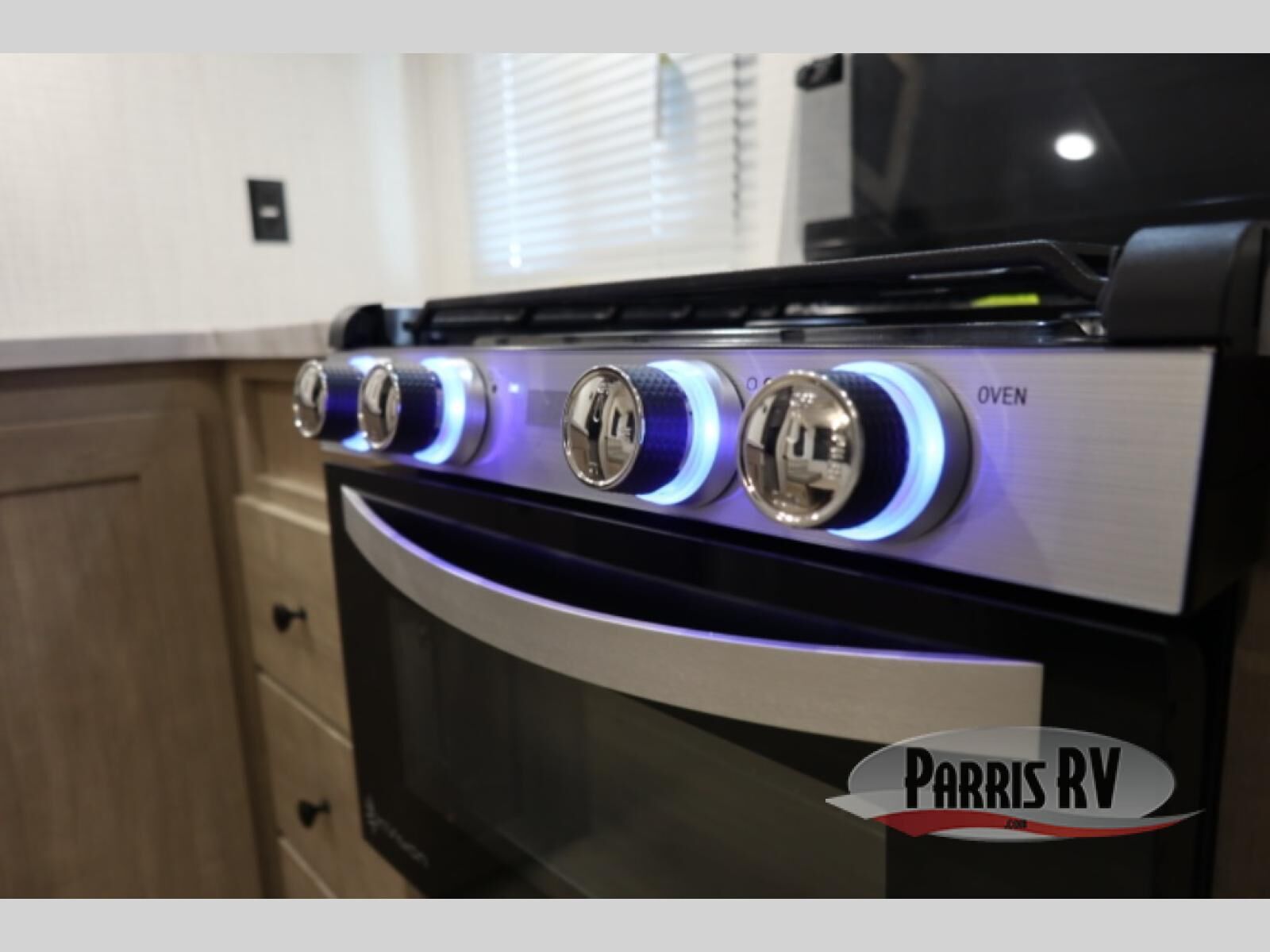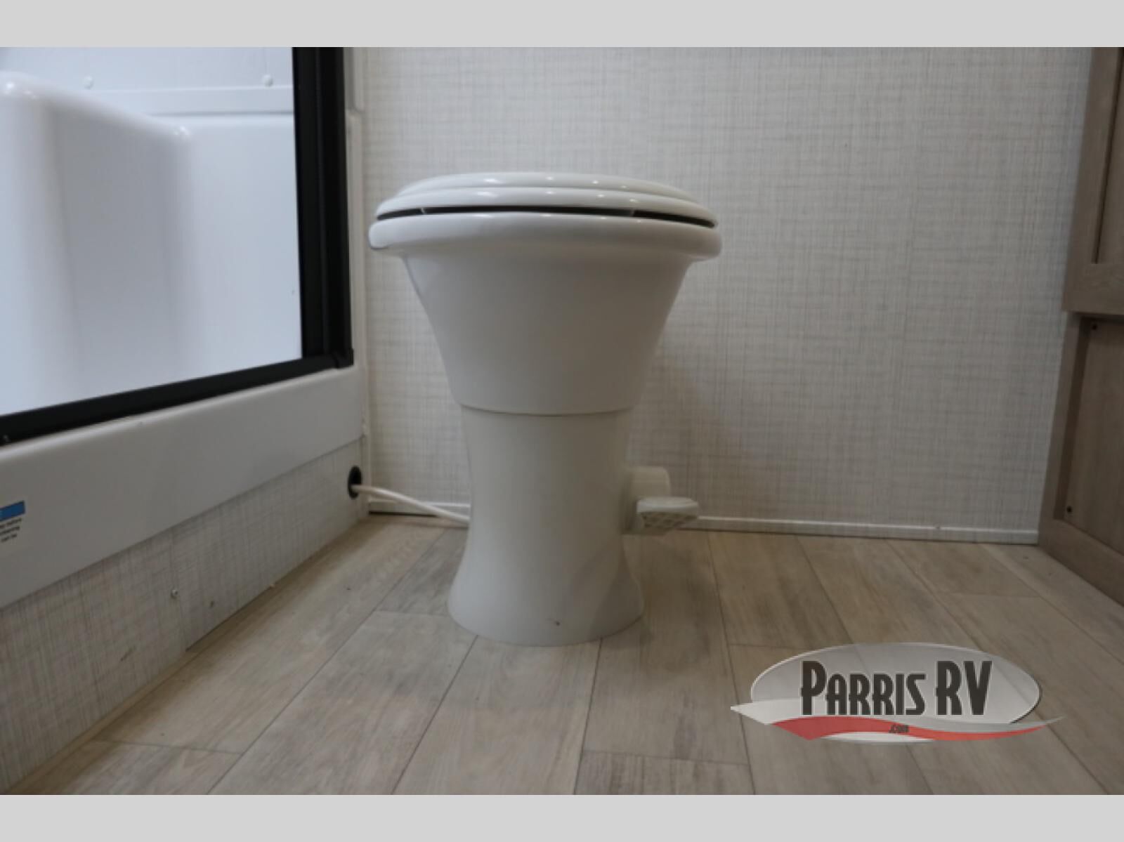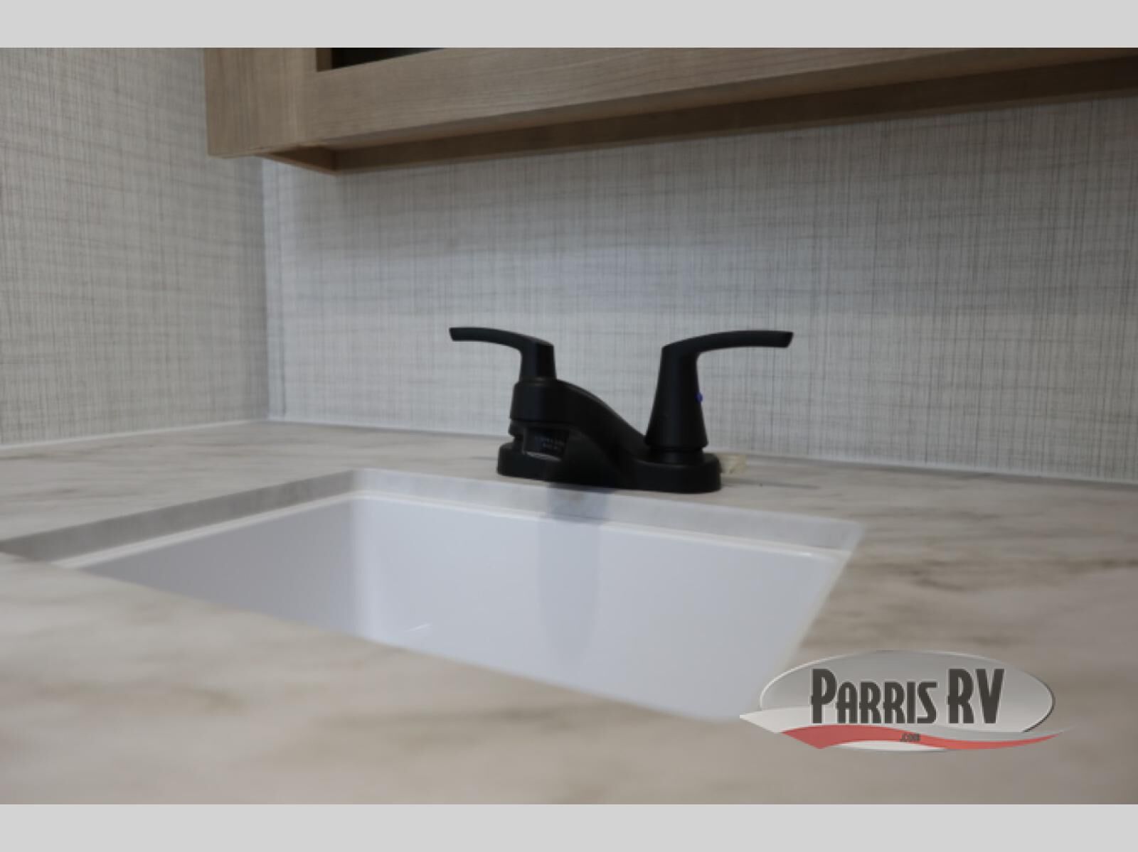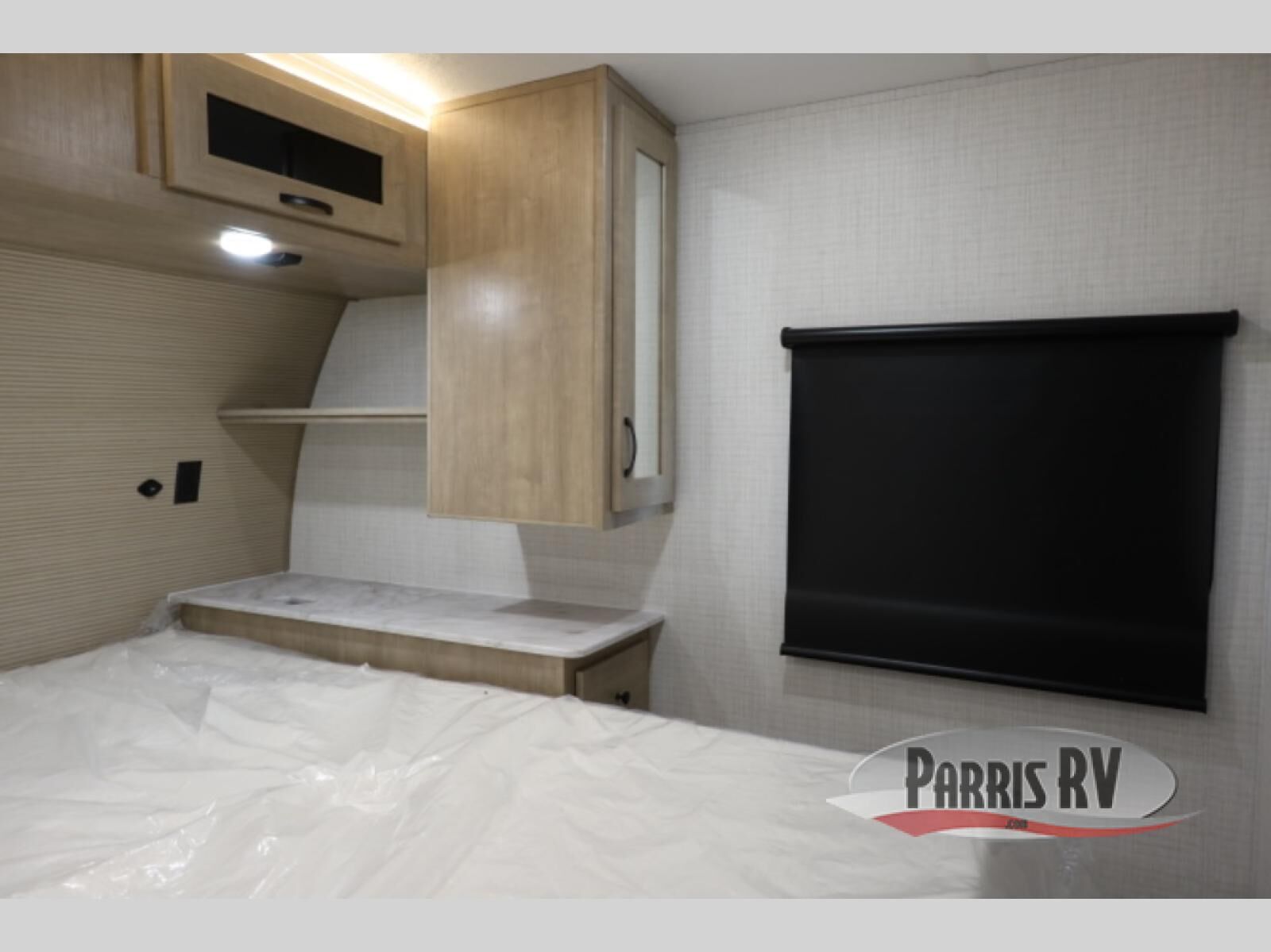 The large slide out in this trailer offers seating and sleeping space on a sofa sleeper and a booth dinette plus adds more floor space to the main living and kitchen area. The rear full bathroom has a 30" x 48" shower with a seat and a linen closet for towels and such, and the front bedroom includes a queen bed and clothing storage plus windows for views of your campsite. The cook will have the choice of making meals inside with full amenities including an 11 cu. ft. refrigerator and an L-shaped counter or outdoors on the outside kitchen. The 21' power awning provides an outdoor living area protected from the elements, and the exterior offers a drop frame pass-thru for ample storage space!