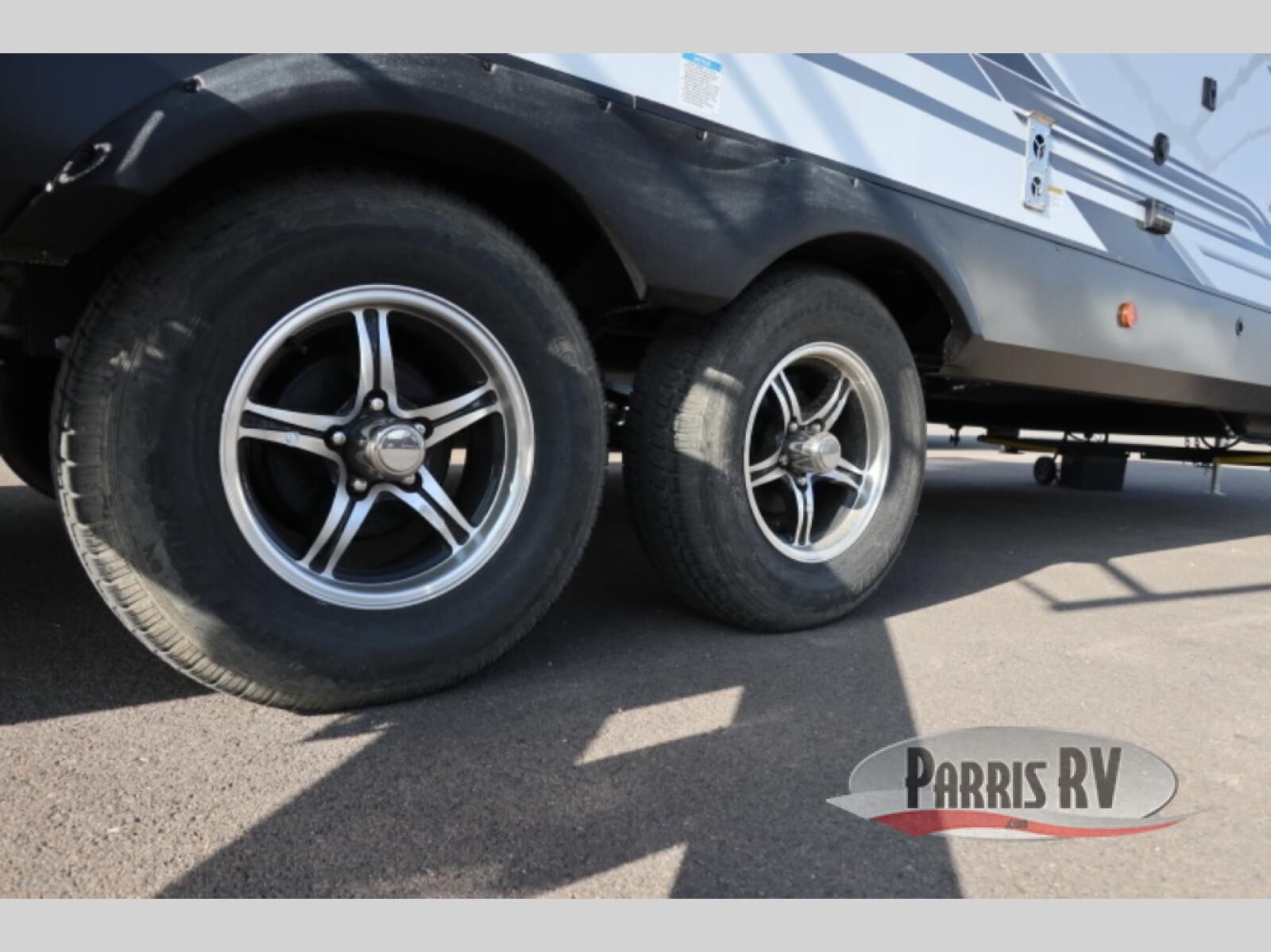 Each SolAire travel trailer by Palomino features a white gel coat exterior and an aluminum superstructure frame for lightweight towing. You will love having a power tongue jack for easy set up, plus slam latch baggage doors with magnets to make unloading easier than ever. There is also a power awning with LED lights and aluminum wheels included on the exterior. Each SolAire is constructed to last with Azdel composite, a fully laminated rear wall and roof, plus a fully enclosed and heated underbelly. The interior includes roller shades and kitchen backsplash, USB ports to keep your electronics charged, a Bluetooth stereo with speakers, and many more stand-out features!