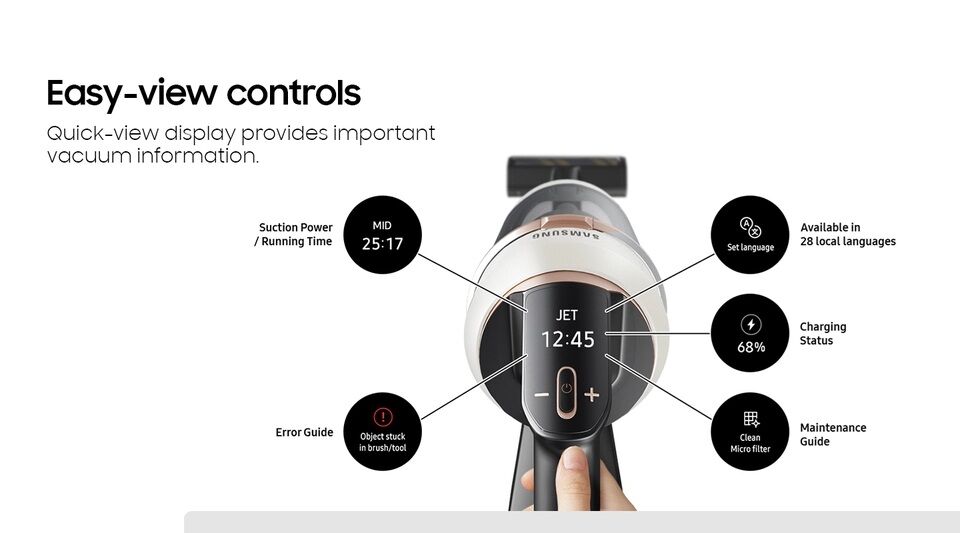 We have one of these Samsung VS20A9582VW Bespoke Jet Pet Cordless Stick Vacuum with Self-Empty All-in-One Clean Station 2031005 #103287 available. These stick vacuums have been lightly used and come in or out of boxes. One unit is missing one battery and the dust bags. We have inspected and tested each unit to make sure that it is in good working condition,
