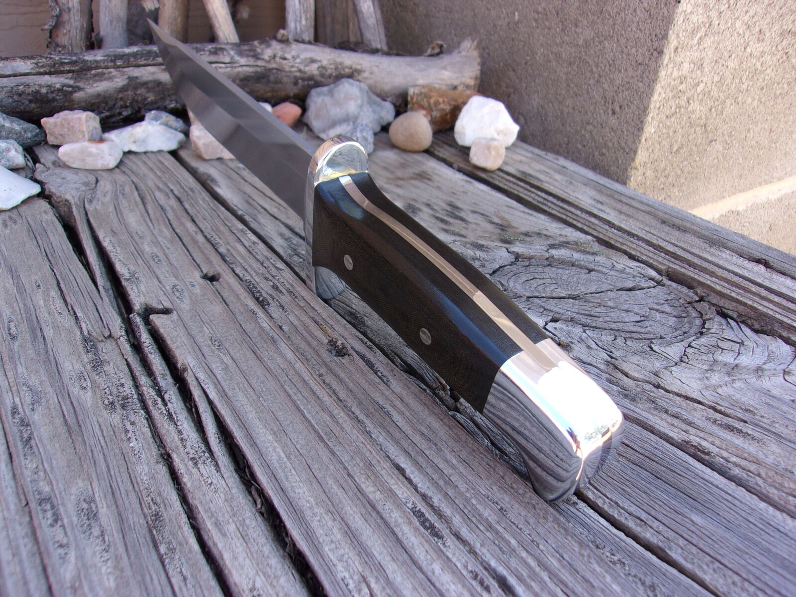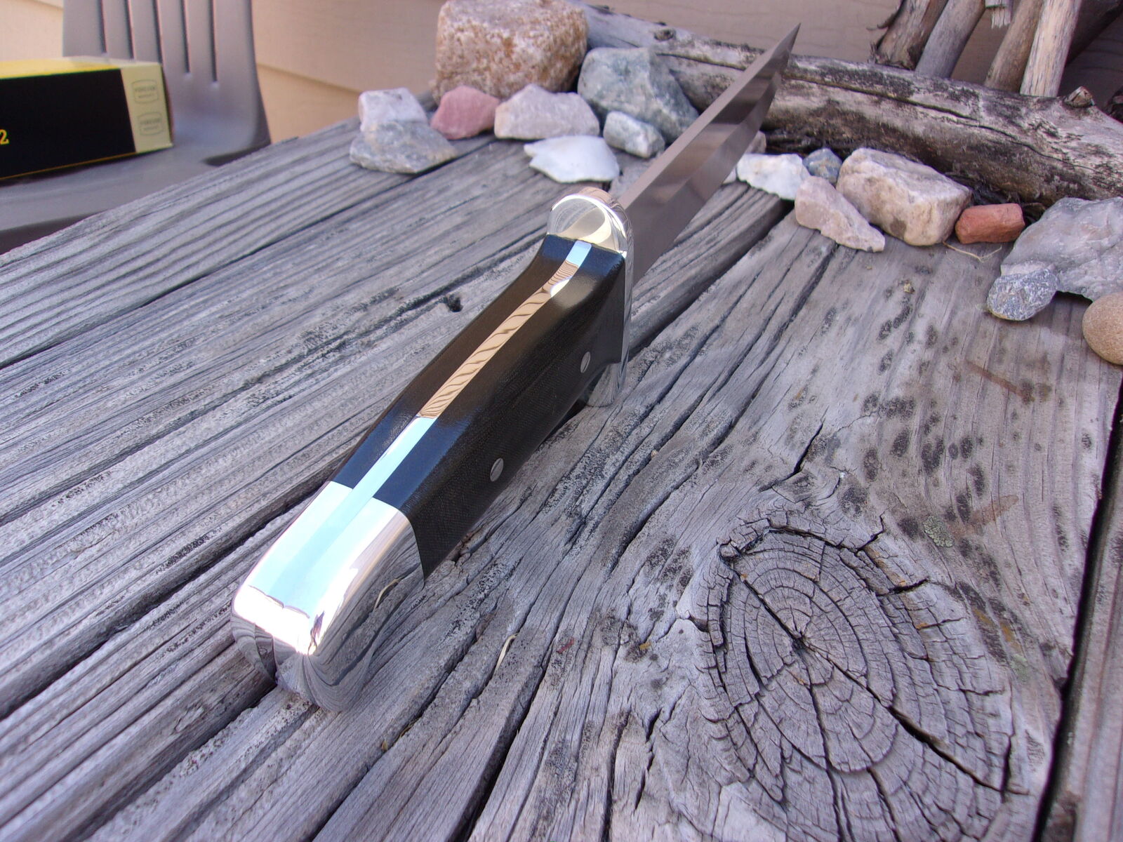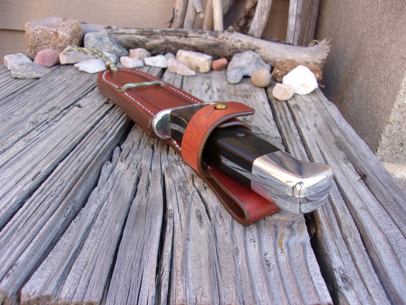Buck 124 Frontiersman w/ LF Custom Leather Sheath (Box Included) I have available my BUCK 124 Frontiersman with LF Custom Leather Sheath. This knife is in new condition, having only being used for the making of sheaths over the past few years. As with many of the knives I have collected over the years, this is one that is very close to being that all-purpose, all-around, do it all knife. Also included is an LF Custom Leather Sheath that is “hand cut” & “hand sewn” using a saddle stitch for increased strength and durability. The leather is 8-10 oz. Full Grain Leather that has a dyed finish and treated with Sno-Seal for longevity and protection. The knife is held in place with a leather retaining strap and secured with a button stud. There are grommets strategically placed for multiple carry positions, and a belt loop that will easily accommodate a 3” belt making it very versatile. An excellent knife for everyday carry, hunting, fishing, hiking, camping, or just about any outdoor activity. Below is from the manufacturer: Blade Length: 6-1/4" (15.9 cm) Overall Length: 11-3/4" (30.0 cm) Blade Steel: 420HC Stainless Steel Blade Finish: Satin Handle Material: Black Micarta with Aluminum Butt and Guard Sheath Material: Black Genuine Leather // LF Custom Leather Sheath Weight: 13.3 oz. (377.0 g) Made in USA