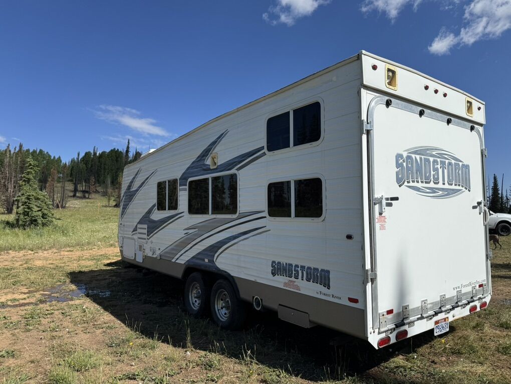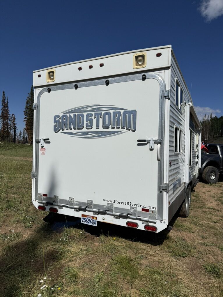 2012 Sandstorm T226SLR Toy Hauler. This trailer is very loaded. Front large bathroom, dual rear power bunks, generator, large freshwater tank, rinse hose for your toys or boots, brand new awning. Interior layout is rare with captains’ chairs instead of standard dinette and rear couch. This is a very comfortable toy hauler to be in and fits most 2 seat SXS’s and likely a narrow 4 seaters. Comes with very nice equalizer hitch. Trailer has been very well taken care of and hard to find in this configuration. Contact with any questions or to come take a look. Asking $14,999.