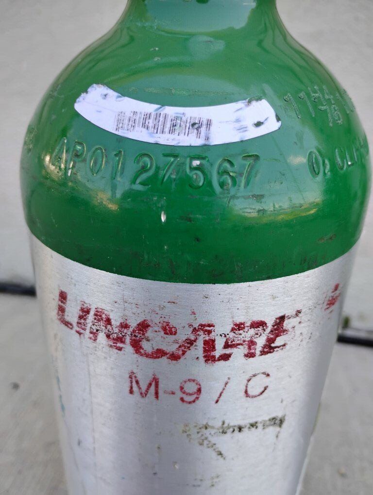 Venmo(Price reduced on 12/9) Up for sale is one Oxygen tank for Compressed breathable Oxygen USP Medical Gas Air Liquefaction by LinCare UN1072 Medical Lot # CA10A149F0 M-9 / C.