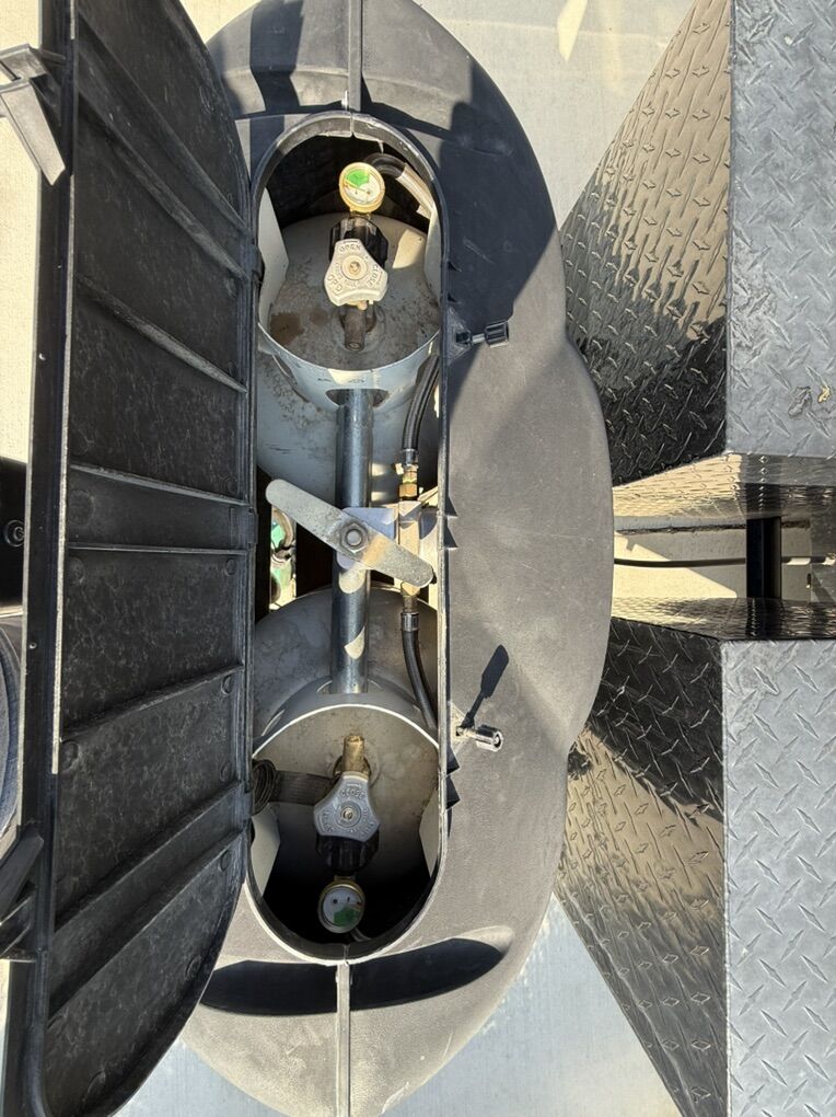 Lots of extras with both including: 500 watt solar 2000 watt inverter Lithium batteries (2) New tires on trailer New memory foam mattress Happi jac system with second bed and couch Sleeps 6 100 gallon fresh, 40 gallon grey, 40 gallon black 20 gallon fuel cell Canopy Rear door with cables turns into deck Fits 2 seater 72” wide UTV Storage 2 propane tanks TV, Stereo, Bluetooth A/C, stove, fridge, heater
