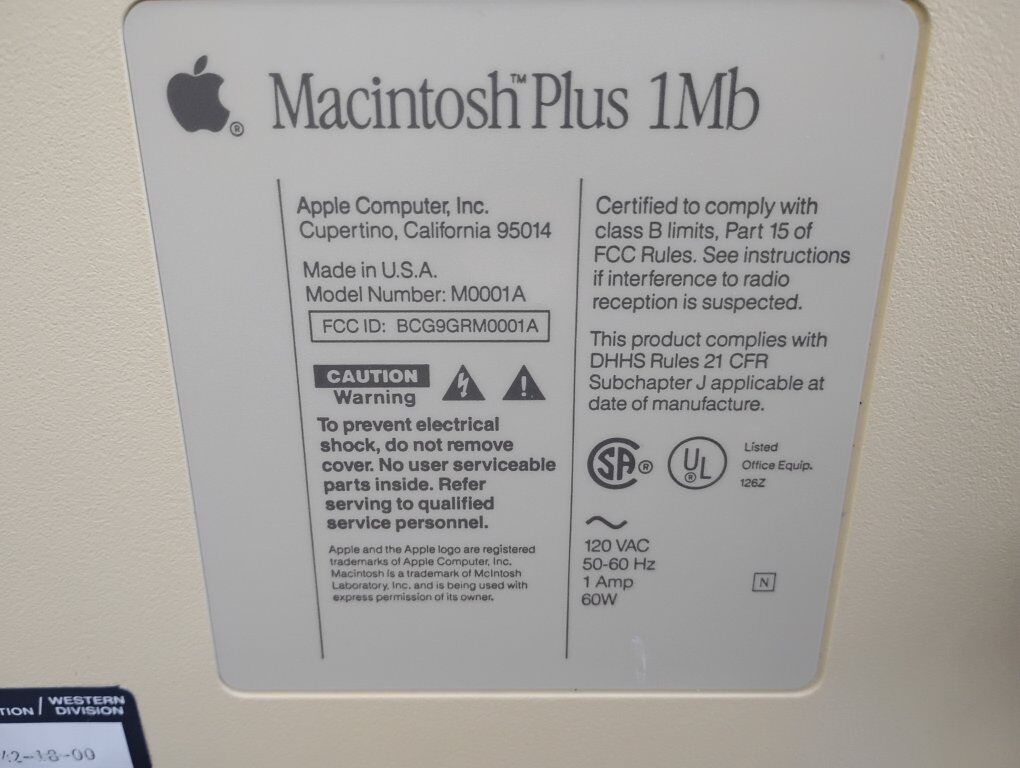 Venmo(Price reduced on 12/9) Up for sale is an Antique Apple Macintosh Plus computer 1MB Ehman Fanny Mac EDQ Corporation Western Divsion 8642/18/00