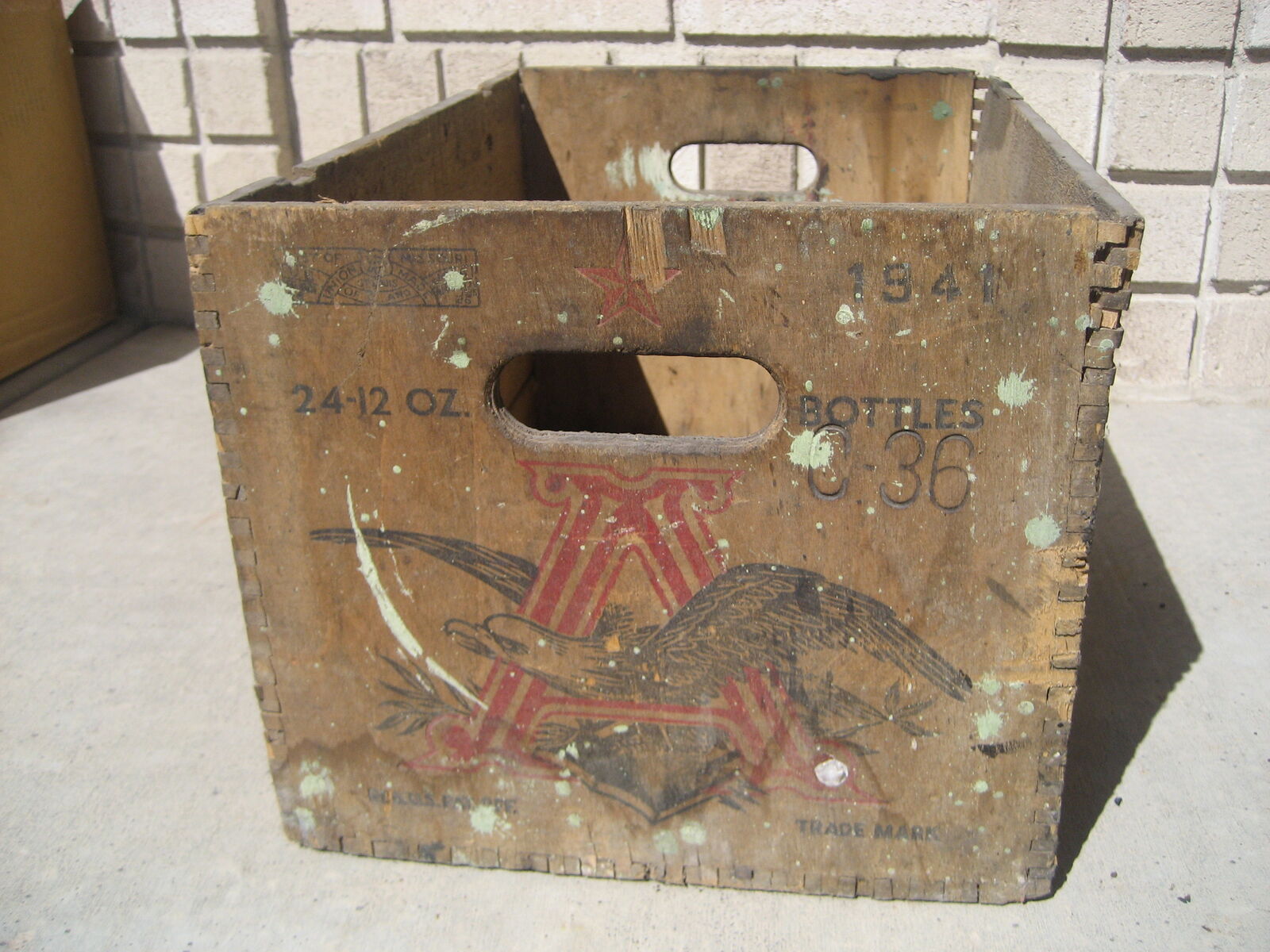 Rare Origional 1941 Anheuser Bush Beer bottle Shipping Box. held 24 12 OZ bottles. Box maded in Columbia box factory St. Louis. US Patent No. 2,219,524. Is in solid condition.