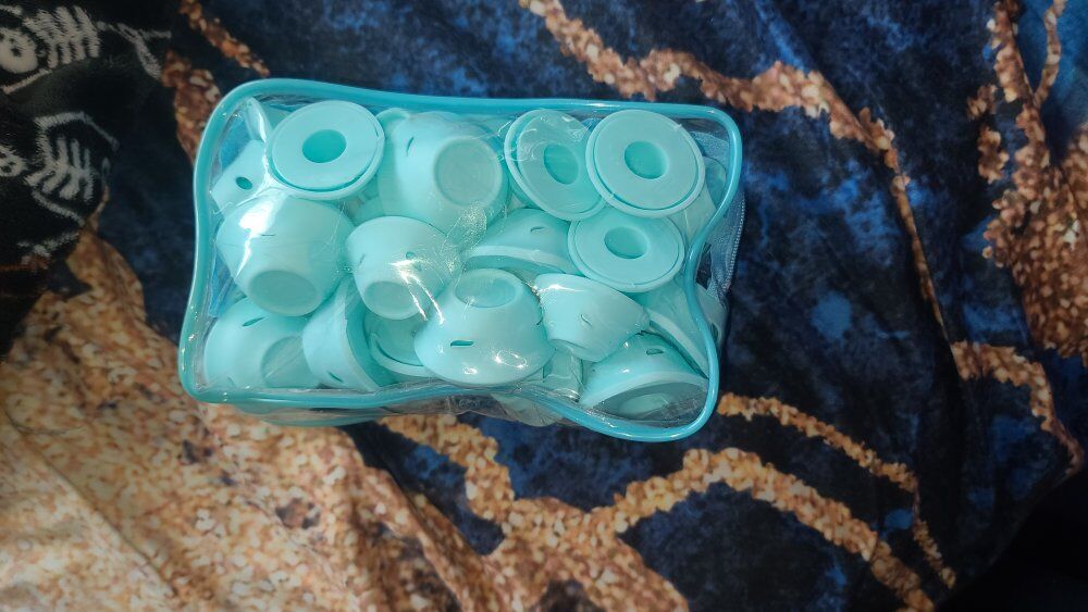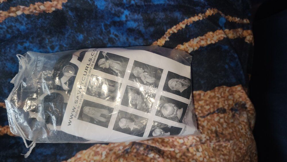 $1 for both Two different types of Hair curlers Blue - silicone, works for all hair lengths(obviously not super short hair), folds over the top of hair, stays well in hair in smaller amounts Black&White - Cloth/Cotton works for all hair lengths (not super short hair) wrap hair around device, two sections optional, snaps together