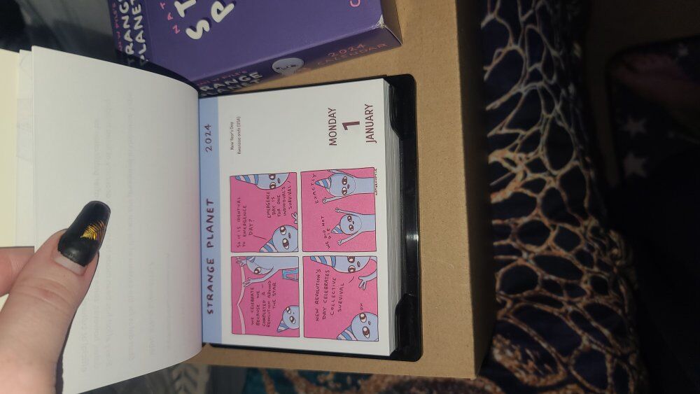 2024 Calendar - Strange Planet never used, still has collectors box. all pages included. has stand on the back