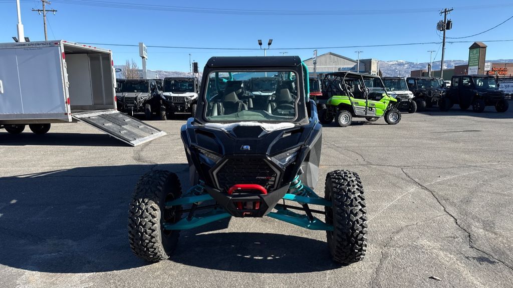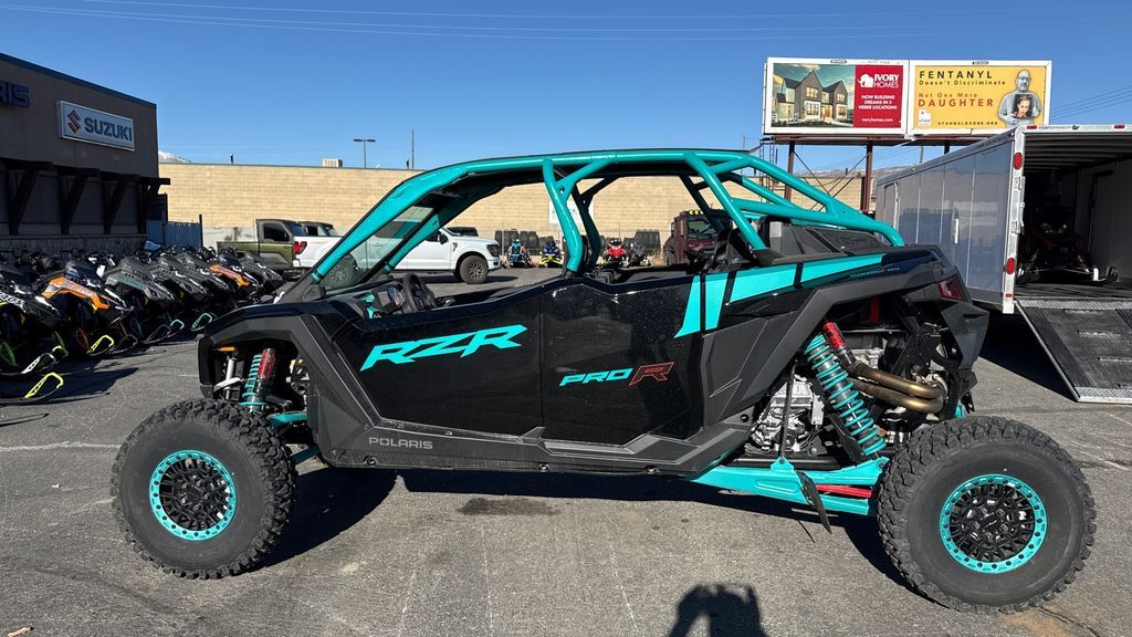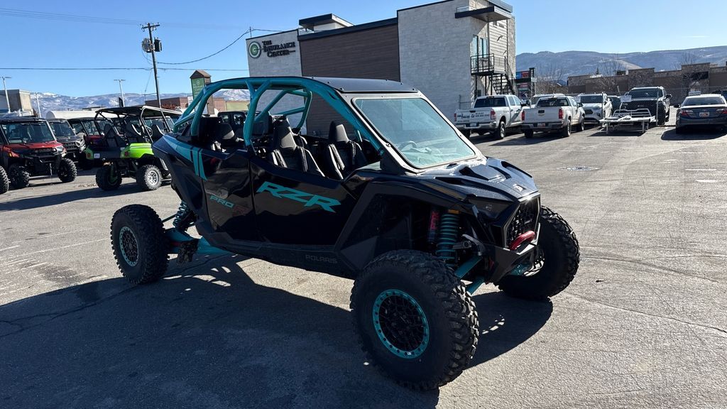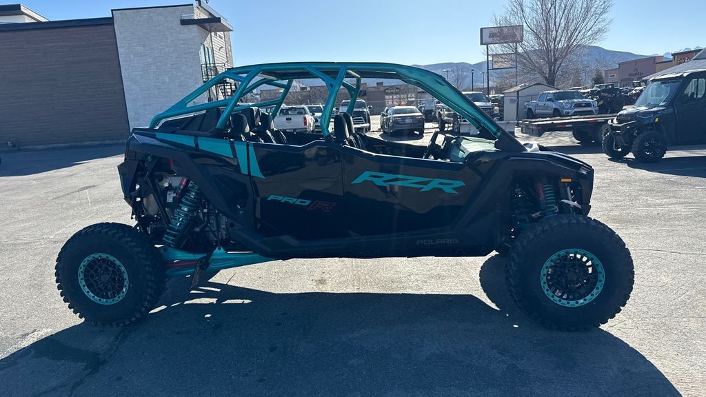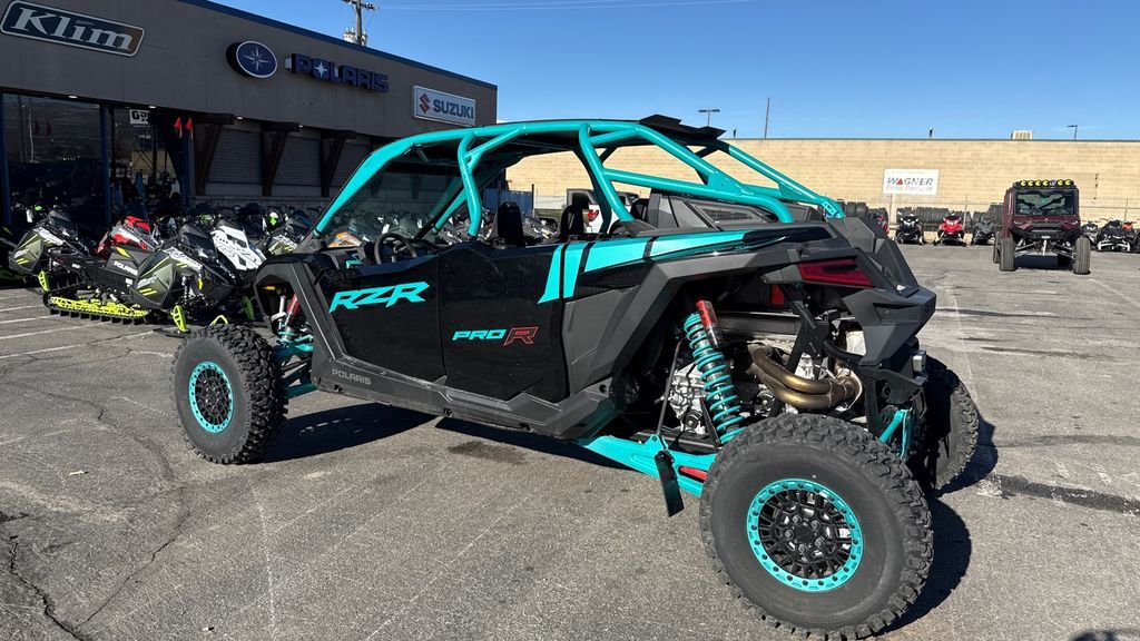 INCLUDES ACCESSORIES 2025 Polaris® RZR Pro R 4 Ultimate Champion of the Desert Unleash a force of nature with RZR Pro R, our most powerful RZR with race-proven durability. Features may include: A Bold New Design Show up and stand out with the bold new design of RZR Pro R–delivering more and style and performance to win it all. Refined Interior Winning starts from within, and RZR Pro R is no exception. Its interior is meticulously designed with more comfort and convenience, empowering you to ride farther, drive harder and finish in first place. PERFORMANCE Out-thrill them all with an off-road beast designed to dominate. RZR Pro R delivers heart-pounding performance with race-proven components to defy deserts and conquer dunes. Game-Changing Technology Take your ride up a notch with off-road optimized tech. From advanced connectivity to groundbreaking sound, the RZR Pro R features cutting-edge tech to unlock more potential off road. NEW! Fresh Cabin Air Intakes NEW! Animated RZR Fang Accent Lighting NEW! Rockford Fosgate® Stage 4 Audio NEW! Color Matched 5-Lug Beadlock Wheels NEW! Pro Climate Heat & Vent seats NEW! Front Painted Fascia NEW! Painted Center Hood DYNAMIX DV with 4 Selectable Ride Modes FOX 3.0 Live Valve X2 Internal Bypass Shocks RIDE COMMAND Off-Road Mapping Integrated into a 7" Display Vehicle Telemetry Data with RIDE COMMAND+ Rear Camera Telescoping Steering Wheel & Button Controls Aluminum Roof Retractable 6-pt Harness
