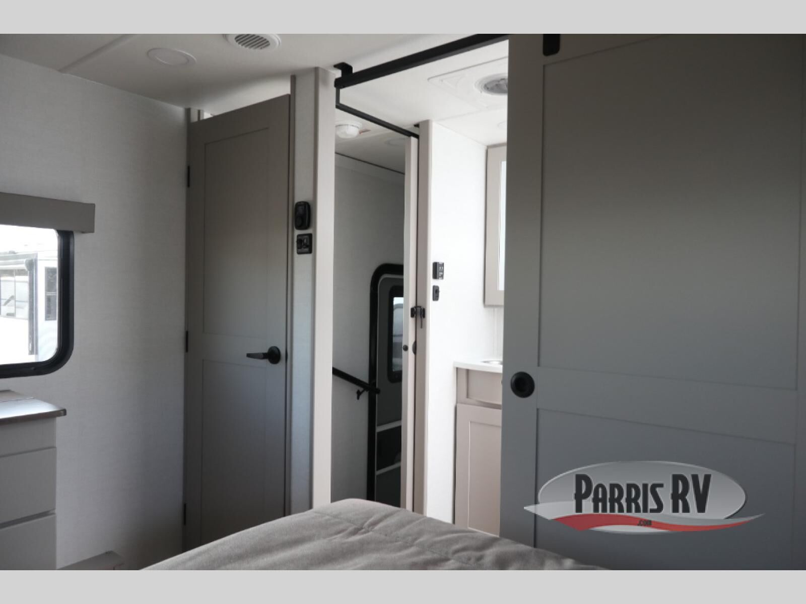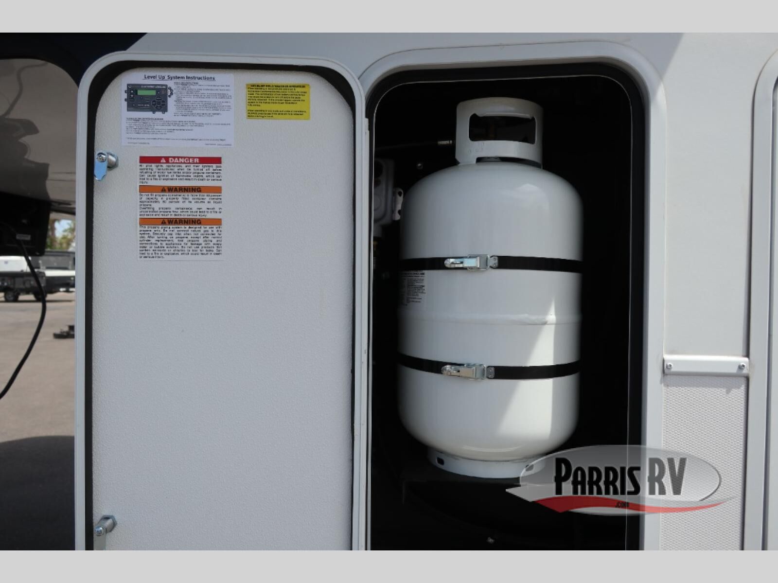 The whole family will have a fun time camping in this toy hauler! You can easily load up your toys into the 11' garage area with the 8' weather resistant ramp door and keep them filled with the dual 30 gallon fuel tanks. Once you unload your toys from the garage area, you can set up the opposing HappiJac sofas with a queen mattress above them, the loft that opens to the living room, and the half bathroom. The kitchen has everything you need to prepare your best meals including two hutches, three pantries, and a kitchen island with two bar stools to enjoy your morning coffee and eggs. The dual entry bathroom has a 48" x 30" shower and leads directly into the front private bedroom. Inside the bedroom is a king bed slide for more floor space, a flip top dresser, and a front wardrobe with washer and dryer prep!