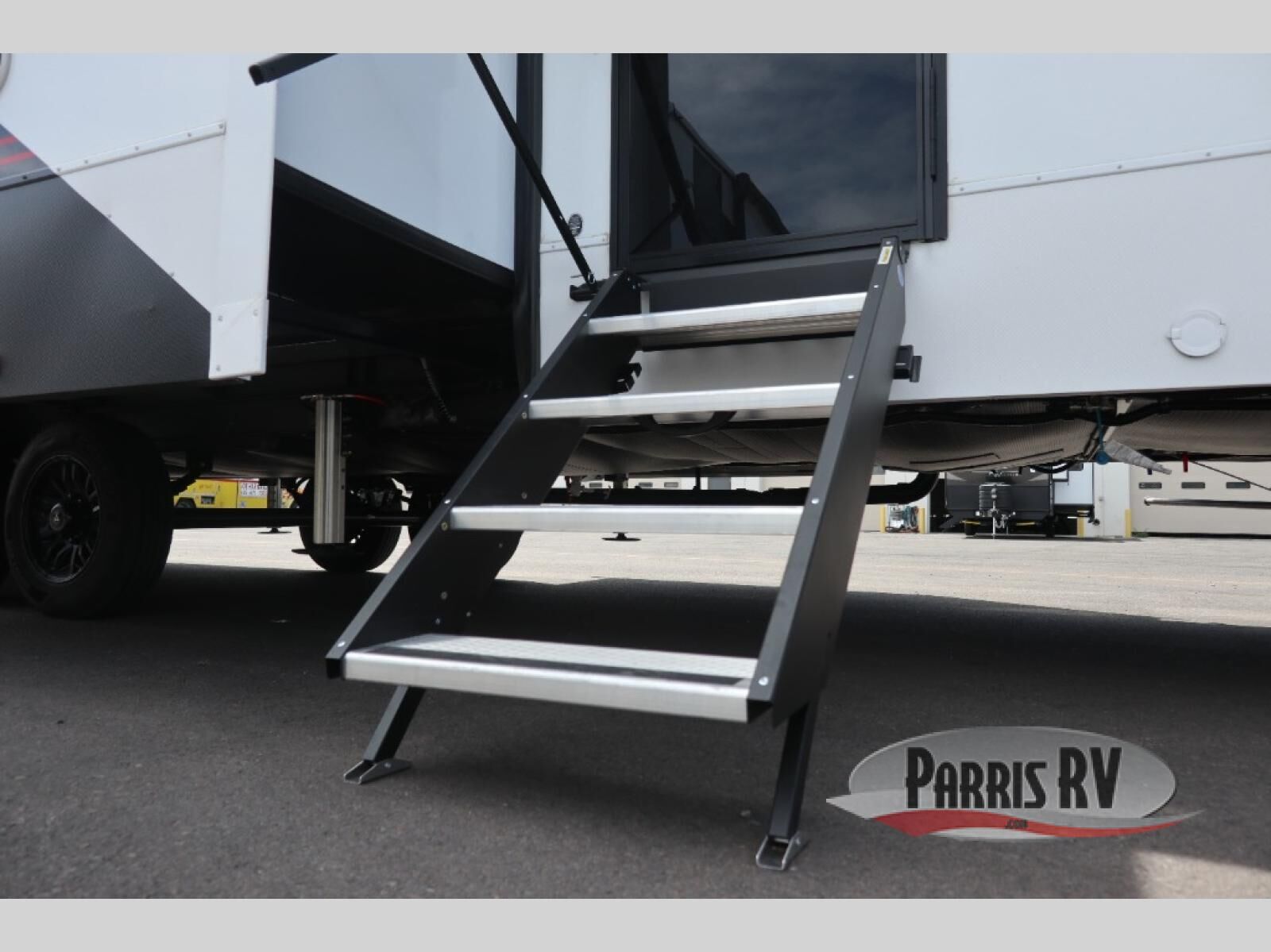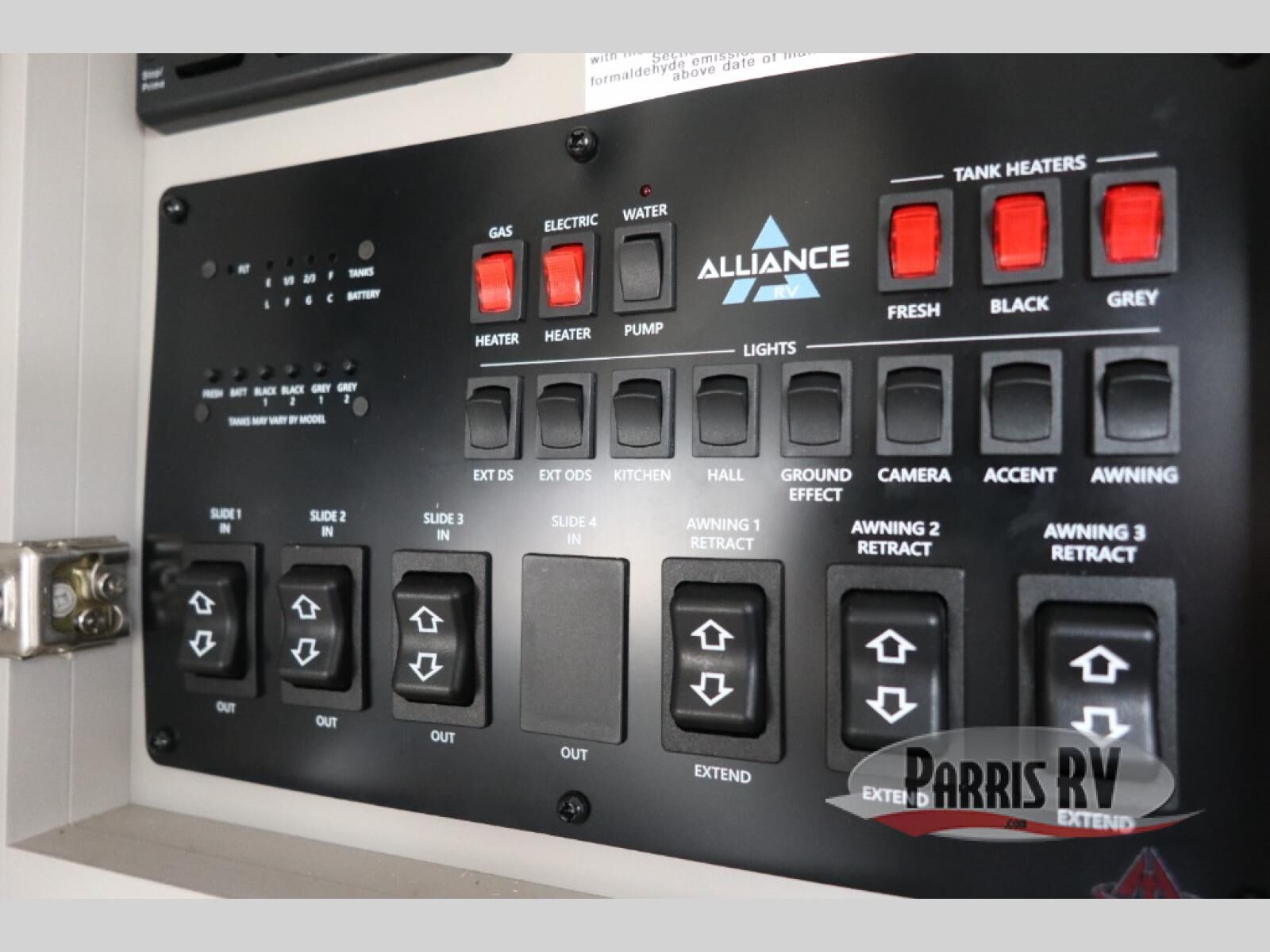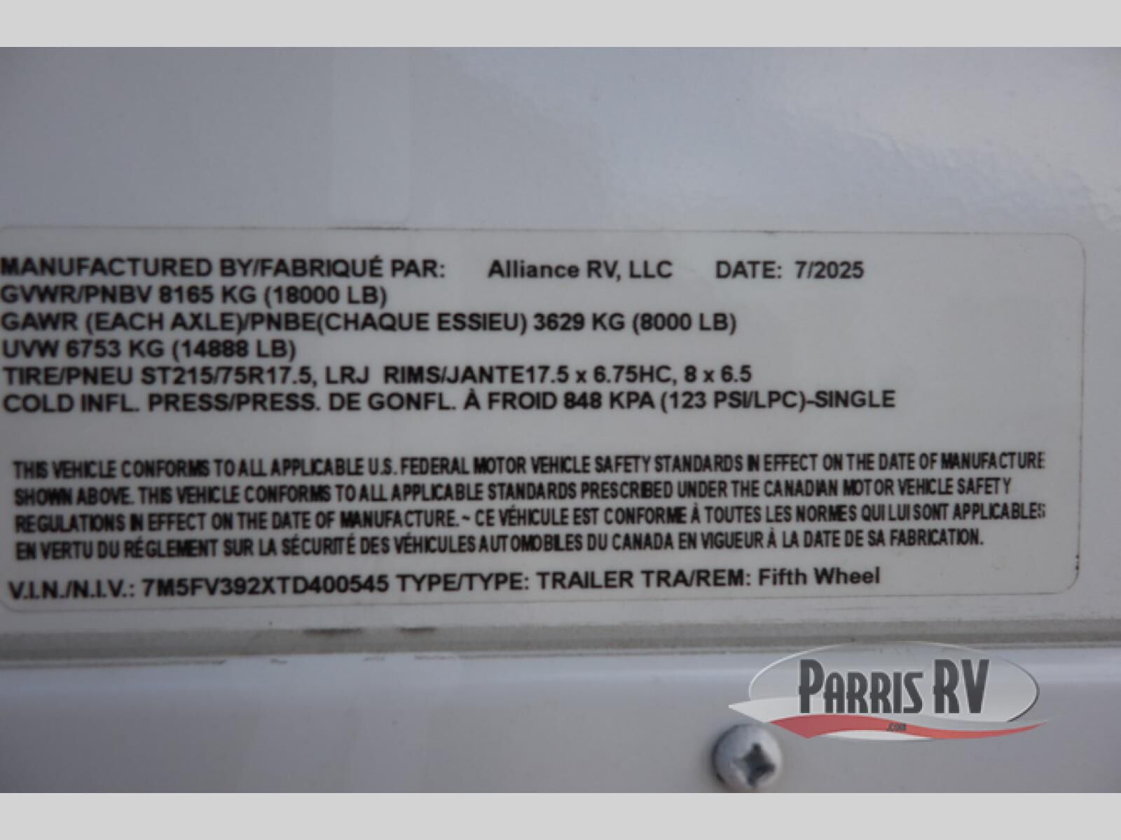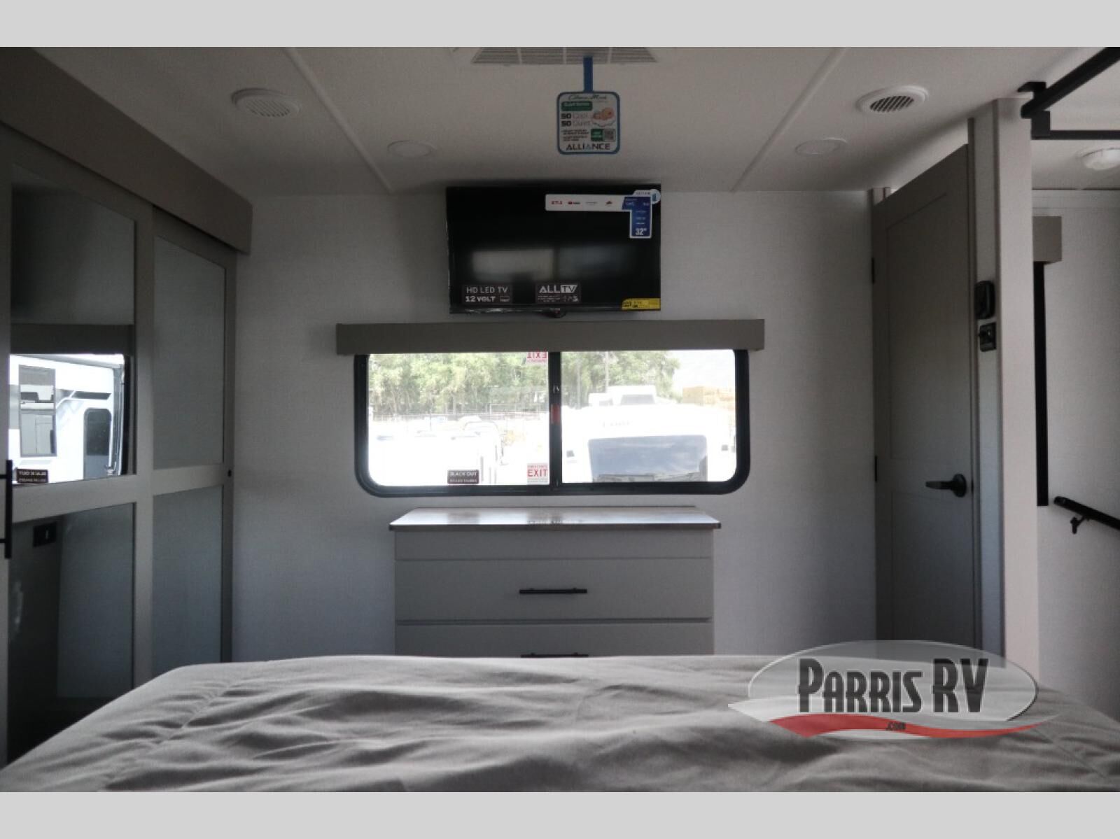 You can bring your toys with you wherever you go with any one of these Alliance RV Valor toy hauler fifth wheels! They are adventure-ready with a quality build from the walk on roof with seamless PVC roof covering to the commercial grade vinyl flooring and MorRyde CRE3000 suspension system. The Performance Running Gear package comes with a 101" wide-body benchmark chassis platform, 7,000 lb. Dexter axles, and a space enhancing drop frame storage compartment to pack in all your riding gear. You can even go off-gridding thanks to the Off the Grid Pack that has two 400 watt solar panels, generator prep, a 40 amp charge controller, and a 100 amp hour lithium iron phosphate battery. Some of the interior comforts you will enjoy are the hardwood cabinet doors and drawers, solid surface kitchen countertops, and commercial grade vinyl flooring with no carpet to make clean up a breeze. The Valor toy haulers are also the Masters of 12 Volt with USB charging station throughout, a stainless steel refrigerator, and more 12 volt features to make camping hassle-free!