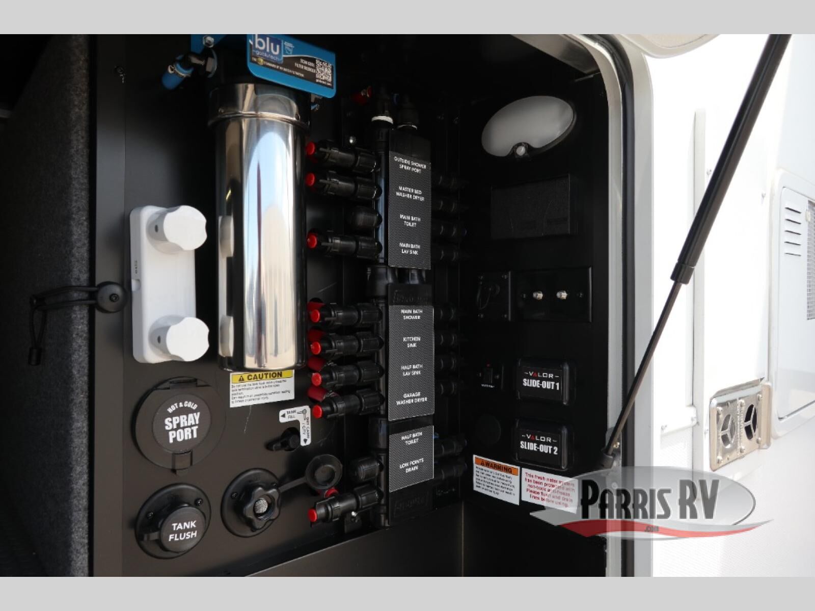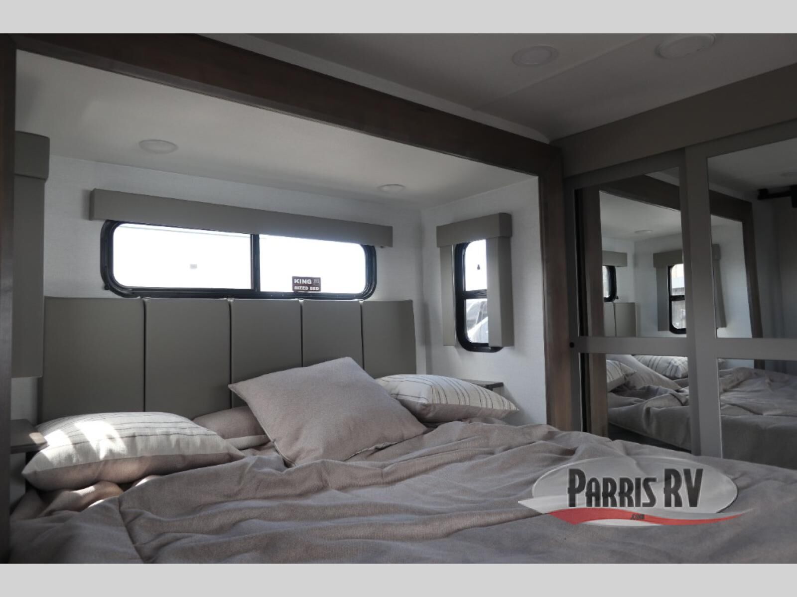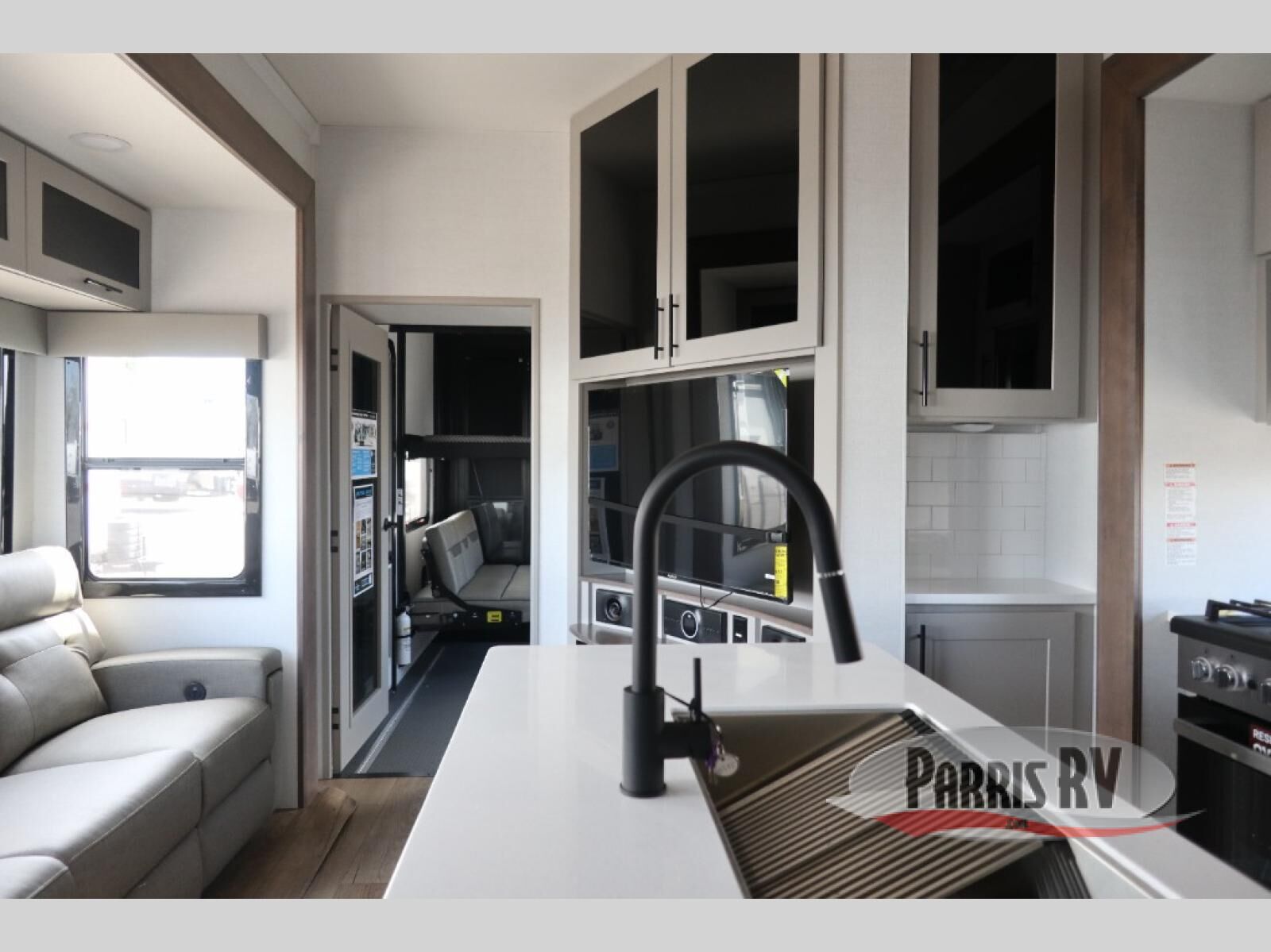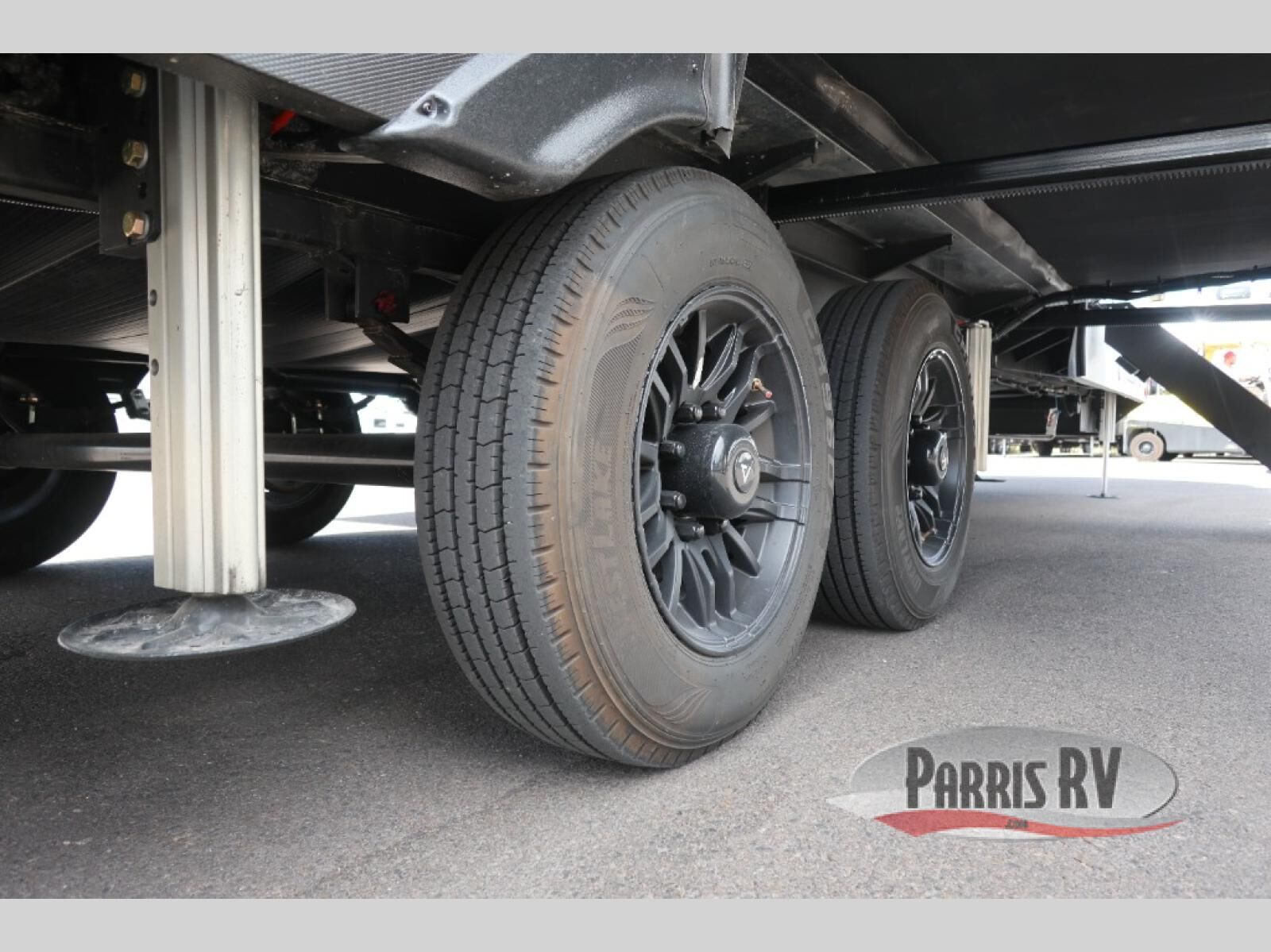 You can bring your toys with you wherever you go with any one of these Alliance RV Valor toy hauler fifth wheels! They are adventure-ready with a quality build from the walk on roof with seamless PVC roof covering to the commercial grade vinyl flooring and MorRyde CRE3000 suspension system. The Performance Running Gear package comes with a 101" wide-body benchmark chassis platform, 7,000 lb. Dexter axles, and a space enhancing drop frame storage compartment to pack in all your riding gear. You can even go off-gridding thanks to the Off the Grid Pack that has two 400 watt solar panels, generator prep, a 40 amp charge controller, and a 100 amp hour lithium iron phosphate battery. Some of the interior comforts you will enjoy are the hardwood cabinet doors and drawers, solid surface kitchen countertops, and commercial grade vinyl flooring with no carpet to make clean up a breeze. The Valor toy haulers are also the Masters of 12 Volt with USB charging station throughout, a stainless steel refrigerator, and more 12 volt features to make camping hassle-free!