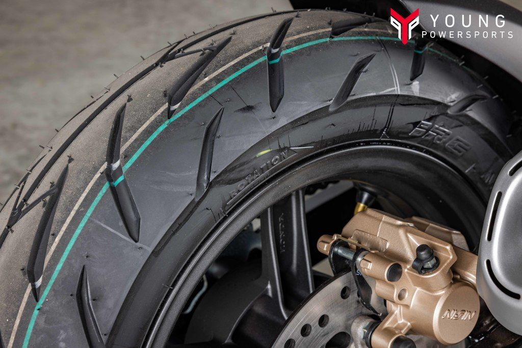 Hydraulic disc brakes measuring 220mm at the front and 190mm at the rear come standard, providing exceptional stopping power.