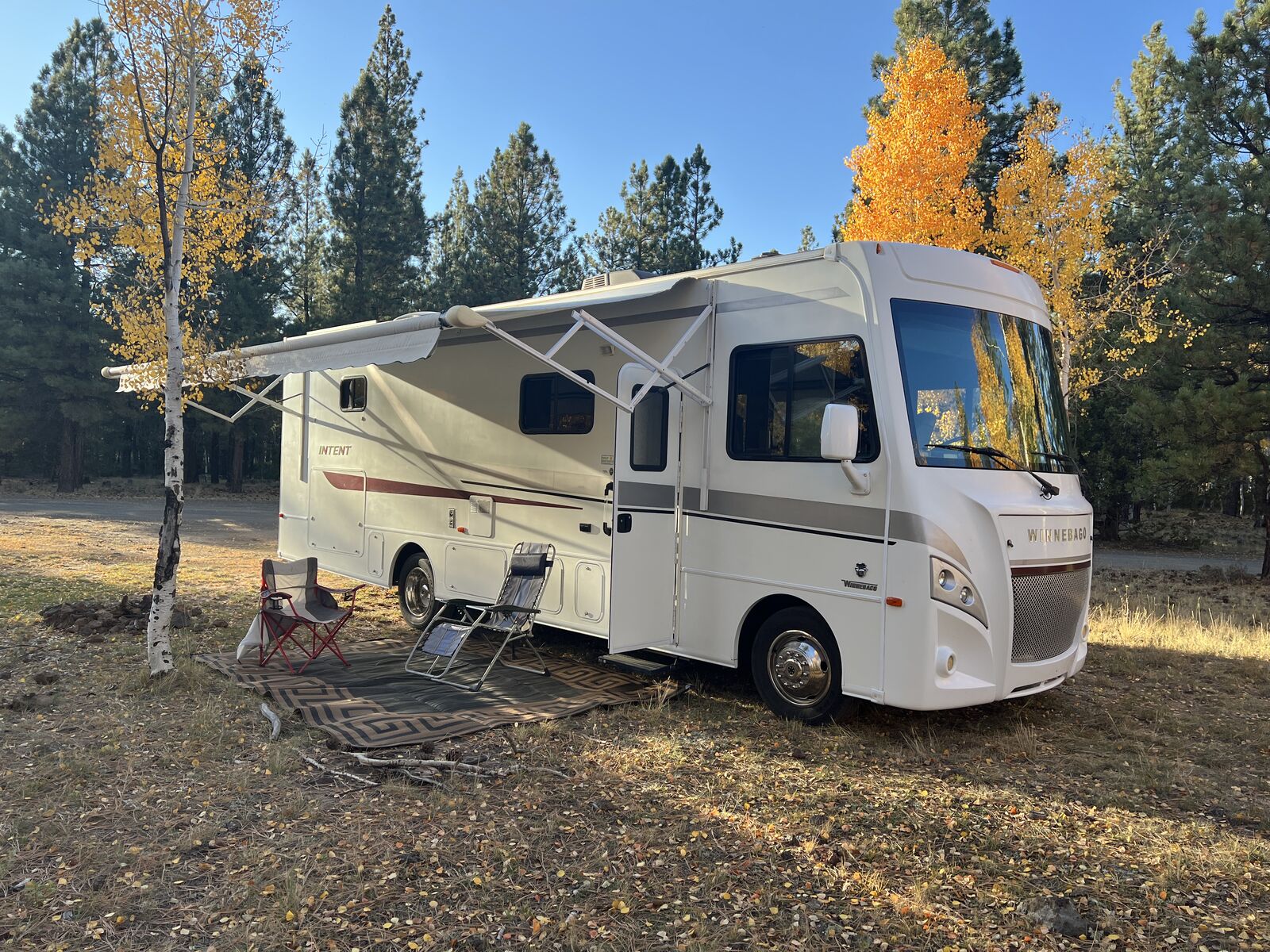 Venmo2018 Winnebago Intent 30R Class A Motorhome. Sleeps 6-7 We’ve loved this motorhome and taken very good care, just getting older and looking to downsize. Very clean inside. Full body polish last year. Ecoflow Solar with 2 rooftop panels added last year. New battery. The price accounts for a crack in the windshield Ford F-53 chassis with a powerful 320-hp Triton V10 engine with 41000 miles Smooth TorqShift 6-speed automatic transmission Manageable 16,000-lb GVWR and 5,000-lb tow capacity Power leveling jacks and a 4 kW Onan generator for easy setup anywhere with 499 hours on it. PLUS 2 solar panels and Ecoflow lithium. 51 gal.fresh water tank, 42 gal.gray tank, 36 black tank Spacious, Stylish Interior Two slide-outs expand your living space for true residential comfort Vinyl-plank flooring, tinted windows, and LED lighting throughout Front lounge with convertible sofa/dinette bed—perfect for guests Center galley with residential fridge, three-burner range, pantry, and dual stainless sink Rear slide-out bedroom with private queen bedroom, overhead cabinets, and wardrobe storage Split bathroom with textured-glass shower, skylight, and laminate counters Outdoor Living Made Easy Winnebago’s Tailgate Package: exterior kitchen with sink, fridge, HDTV, and awning Heated holding tanks and 80-gallon fuel capacity for extended adventures