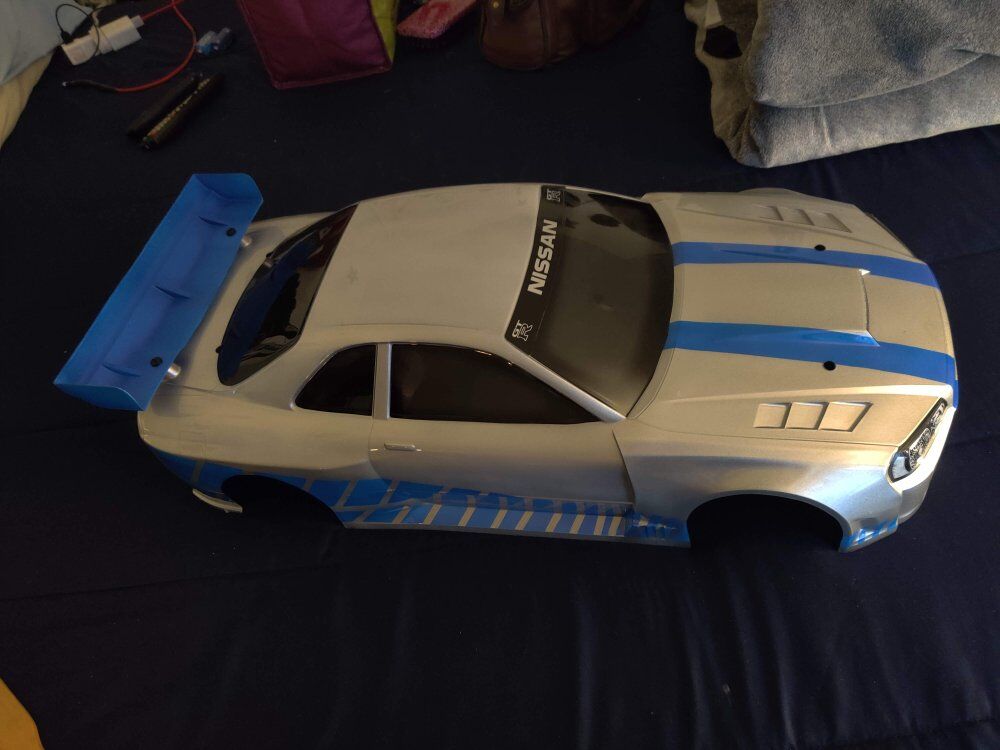 GooglePayFast and Furious "Brian's Nissan" replica body. this fits on arrma felony and similar body style cars if you have the right body mounts.. 1/5 scale cars.. this was a clear body and was hand painted so it's not perfect perfect but it looks amazing.. $45 obo