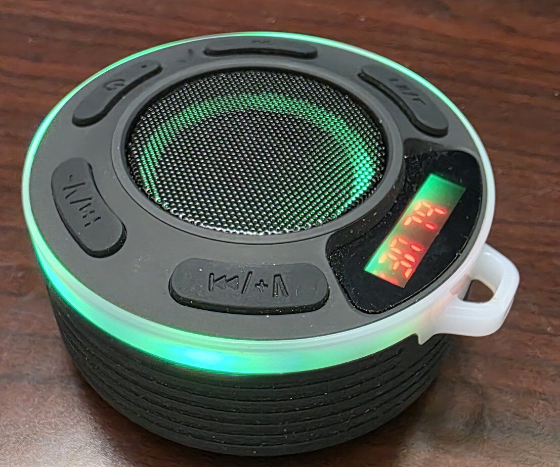 NEW Bluetooth Shower Speaker, Portable 360 HD Surround Sound, IPX7, Waterproof, Removeable Suction Cup, USB-C, Colorful Lights. This speaker is for sample, I have more new speakers. See the video and all photos, text message is better, see my other adds, thank you.