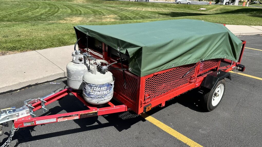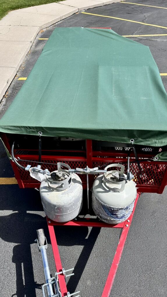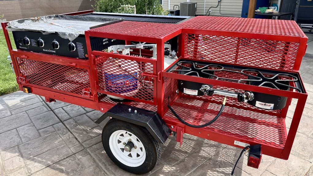 VenmoPortable Propane Cooking Trailer – Perfect for Events, Catering & Outdoor Feasts! Turn any outdoor space into a professional kitchen with this heavy-duty, custom-built propane cooking trailer. Great for catering, BBQ’s, festivals, fundraisers, tailgates, large family gatherings and more! Everything works and is ready to cook! Don’t miss this opportunity to own a mobile kitchen powerhouse. Ready to roll and feed the crowd! Features Include: Four 20lb propane tanks (included & mounted) with regulator hookups. Blackstone 4-Burner Griddle – Cook up pancakes, burgers, fajitas, and more. Large 8-Burner Gas Grill – Stainless steel front with individual controls for precision cooking. Double High-Output Propane Burners – Great for pots, frying, or boiling large batches. Heavy-Duty Steel Frame – Red finish with protective mesh panels. Easy Tow Trailer – Standard 2” hitch, safety chains, and jack stand. Onboard Storage & Side Shelving – Plenty of space for utensils, pans, and prep work. DOT-Approved Lights – Ready for the road. Condition: Brand New, well maintained, ready to cook! All appliances function perfectly. Minor cosmetic wear on propane tanks, but everything is safe and operational. Perfect For: Event caterers BBQ competitions Fairs and festivals Company picnics Church or school fundraisers Tailgating Don’t miss this opportunity to own a mobile kitchen powerhouse. Ready to roll and feed the crowd!