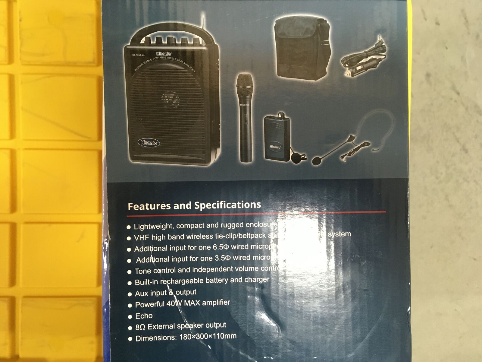 New Hisonic HS120B Rechargeable & Portable PA (Public Address) System with Built-in UHF Wireless Microphone (1 Handheld +1 Belt-Pack)