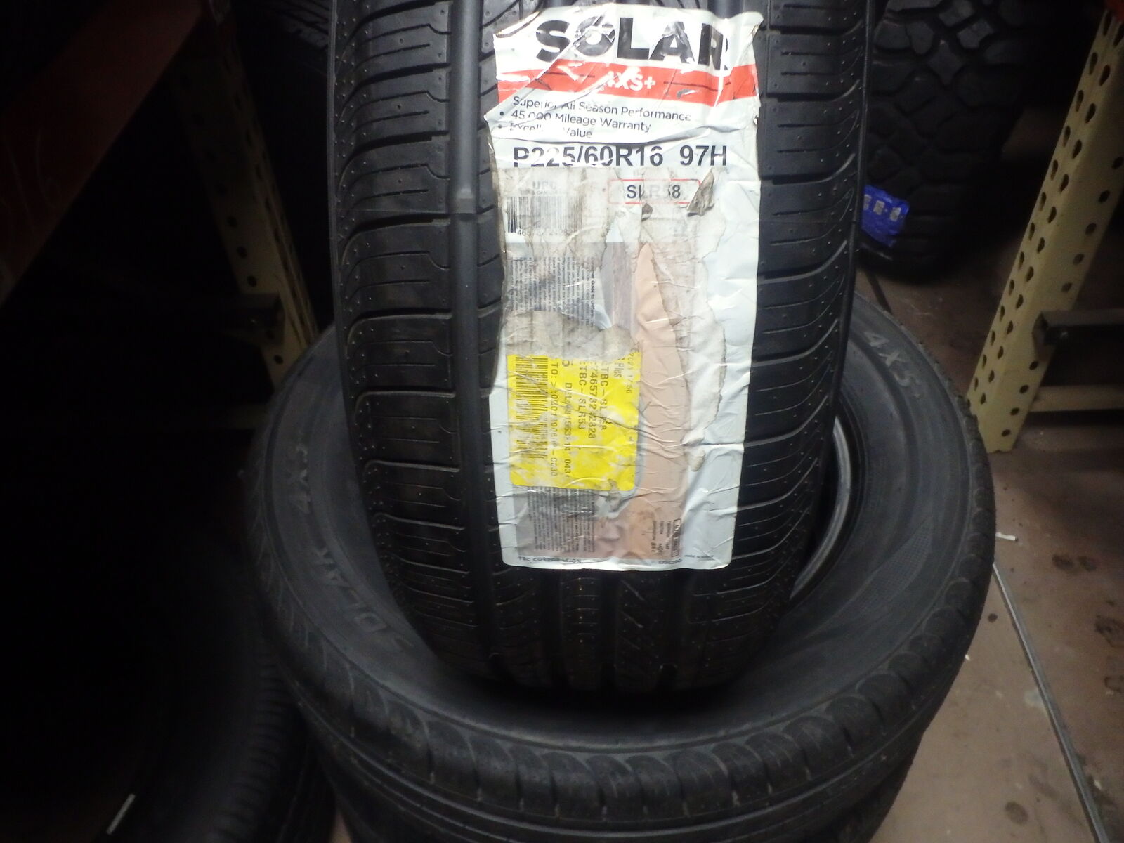 J&J TIRES & WHEELS SET OF BRAND NEW TIRESB 225/60R16 SOLAR 4XS + FOR ONLY $280 THESE IS A GREAT TIRES FOR ANY WEATHER CONDITIONS, WE WILL INSTALL THEM FOR AN ADDITIONAL $20.00 PER TIRE INSTALLATION INCLUDES MOUNTING,BALANCING,VALVE STEAM AND TIRES DISPOSAL FEE,CALL FOR ANY QUESTIONS AT JOSE OR ROBERTO 801-878-4556 801-410-4460 OR VISIT US,WE'RE OPEN MONDAY TO SATURDAY FROM 9:00 AM TO 6:00 PM..WE HAVE A LOT'S A MORE AN NEW TIRES AND WHEELS CALL US IF YOU ARE LOOKING FOR A DIFFERENT SIZE....
