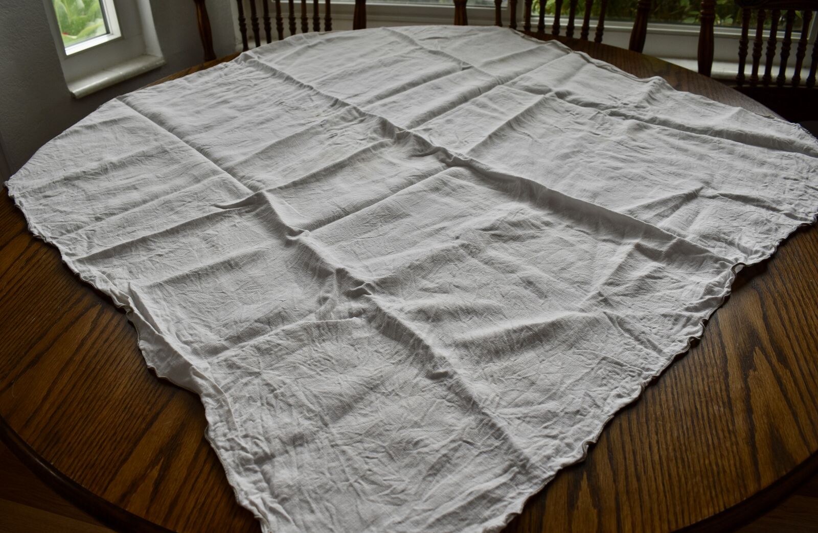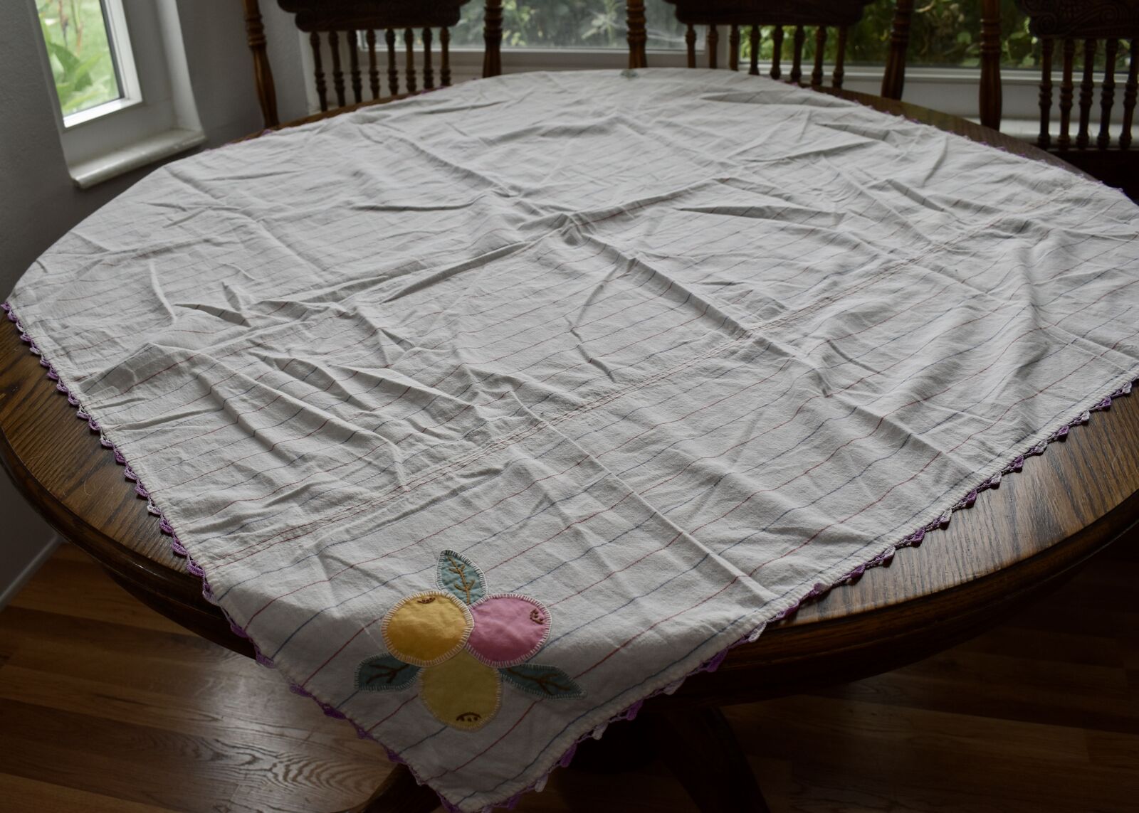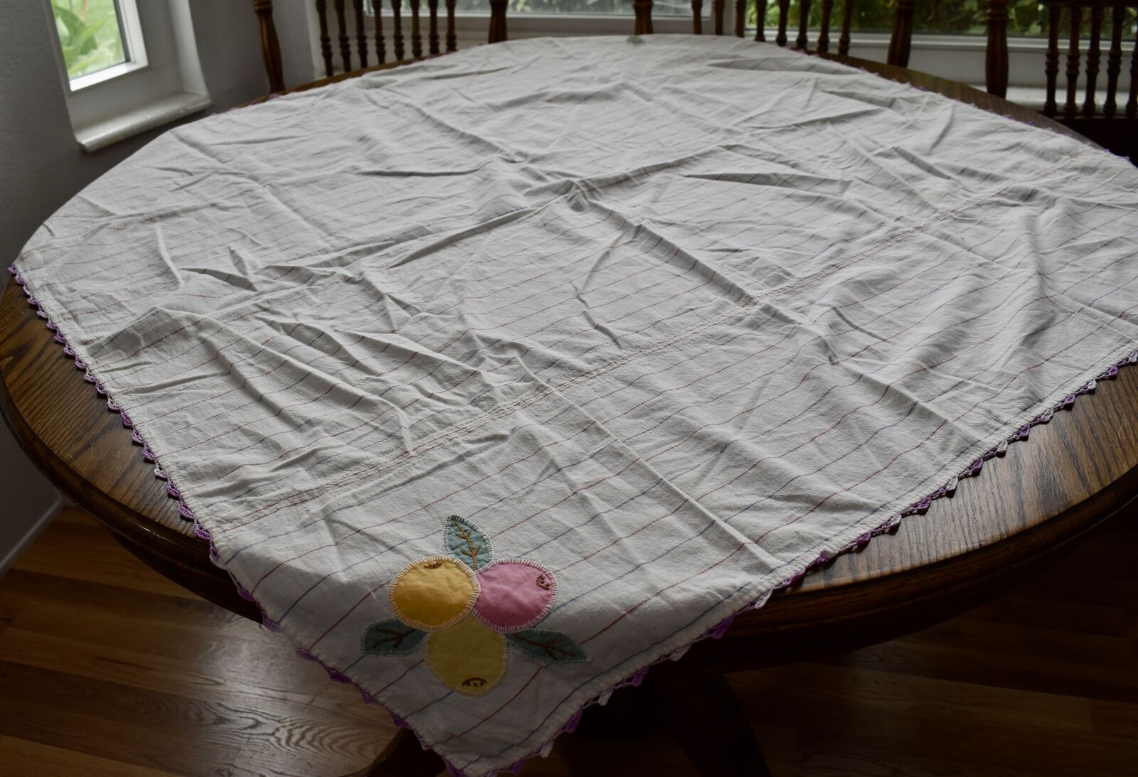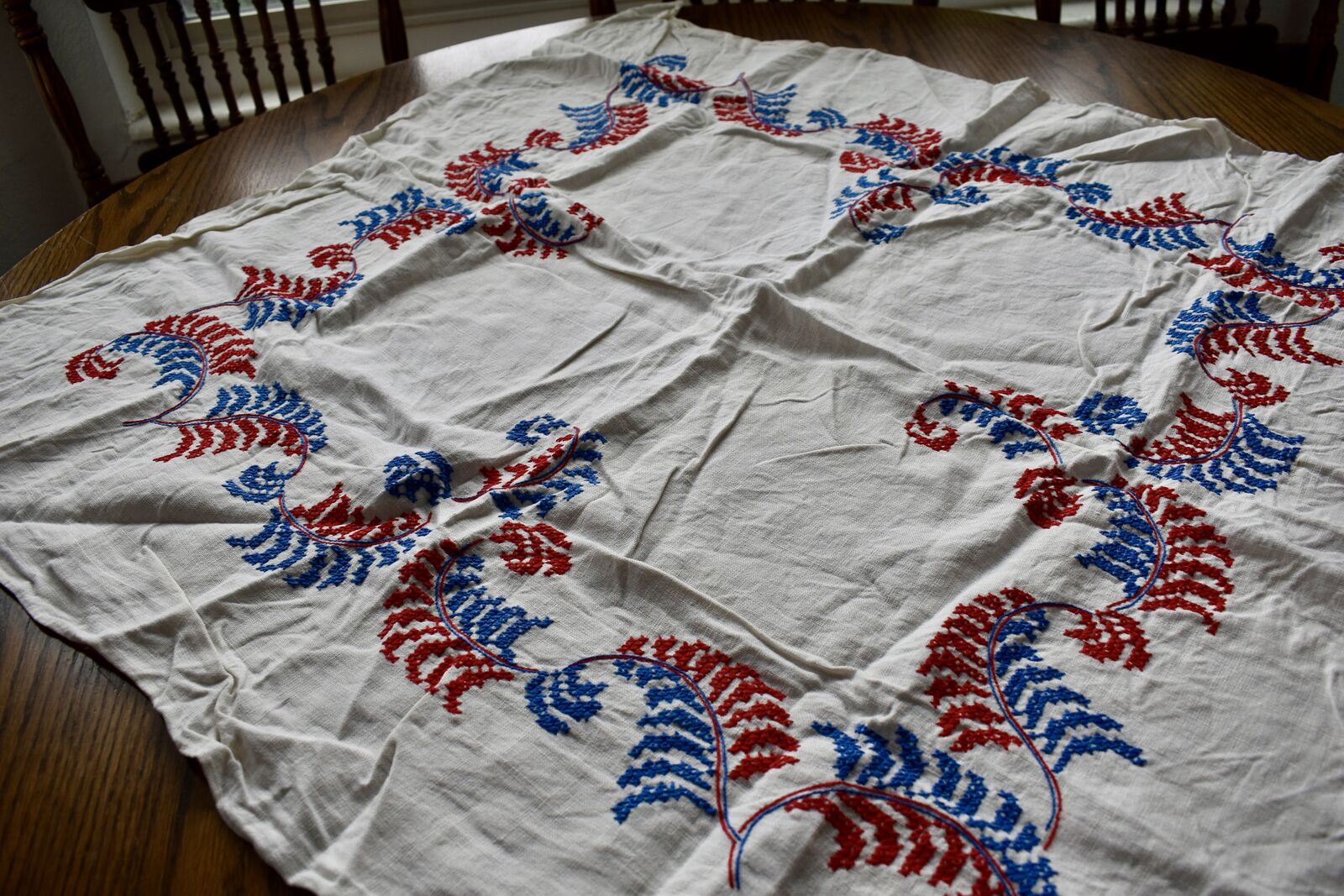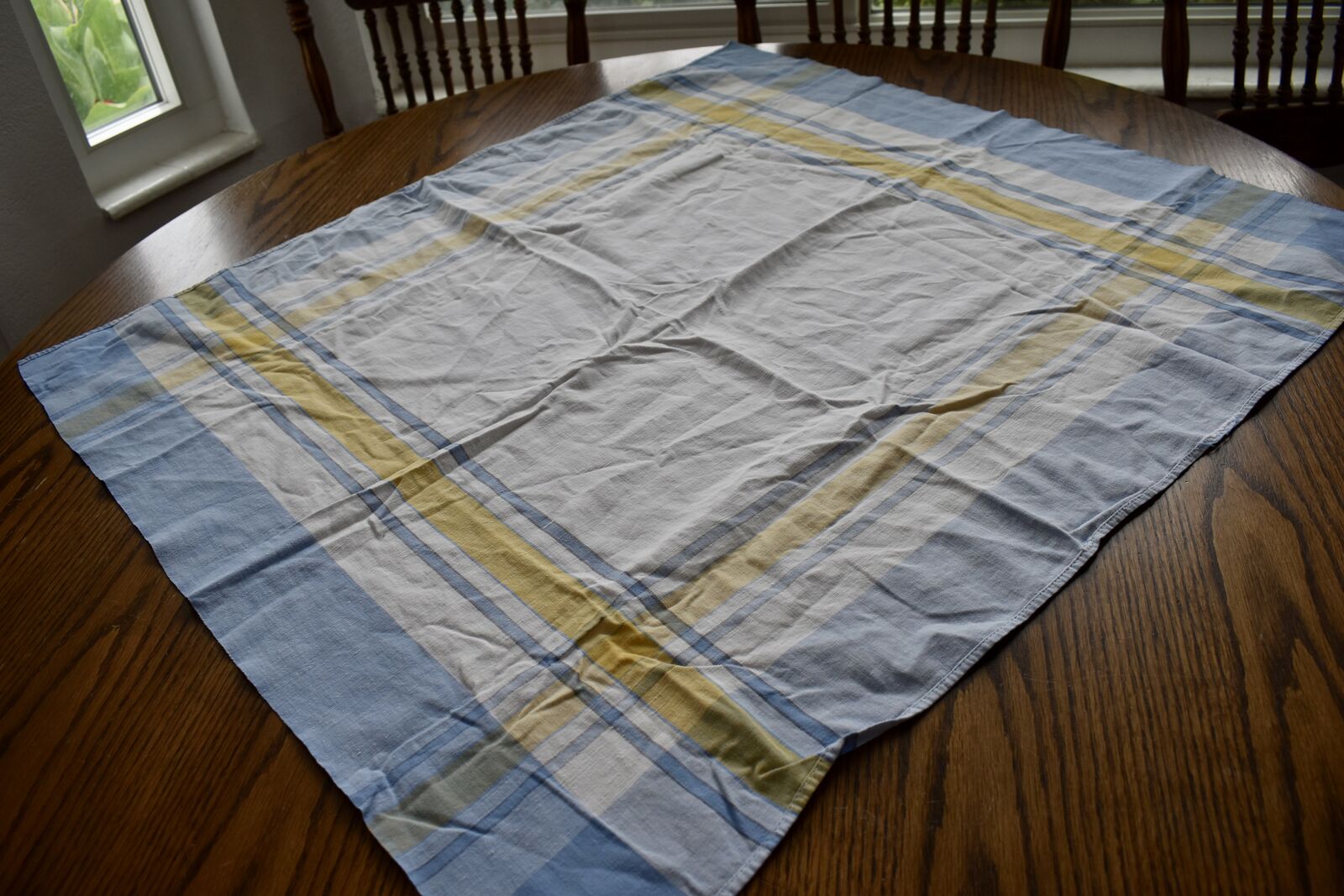 IT MEASURES… The Table that these pretty Table Cloth Linens were displayed on for the photos measures approx.48 inches across - ( That may give you a general idea of the size of each one. )