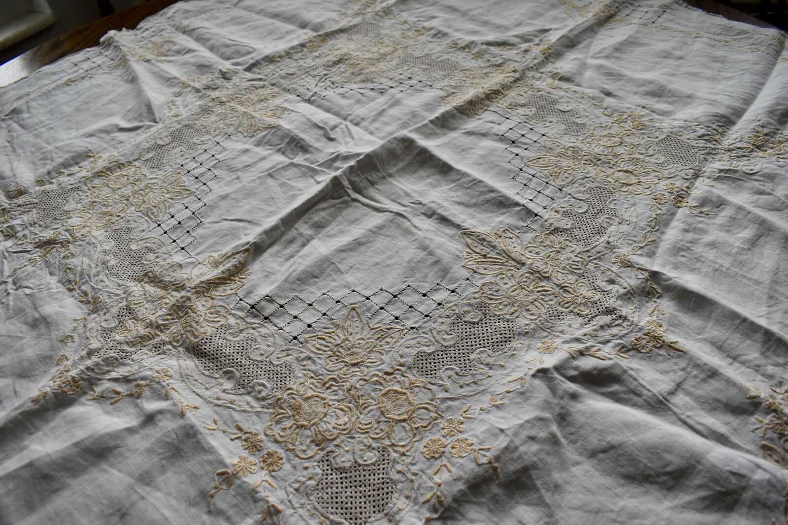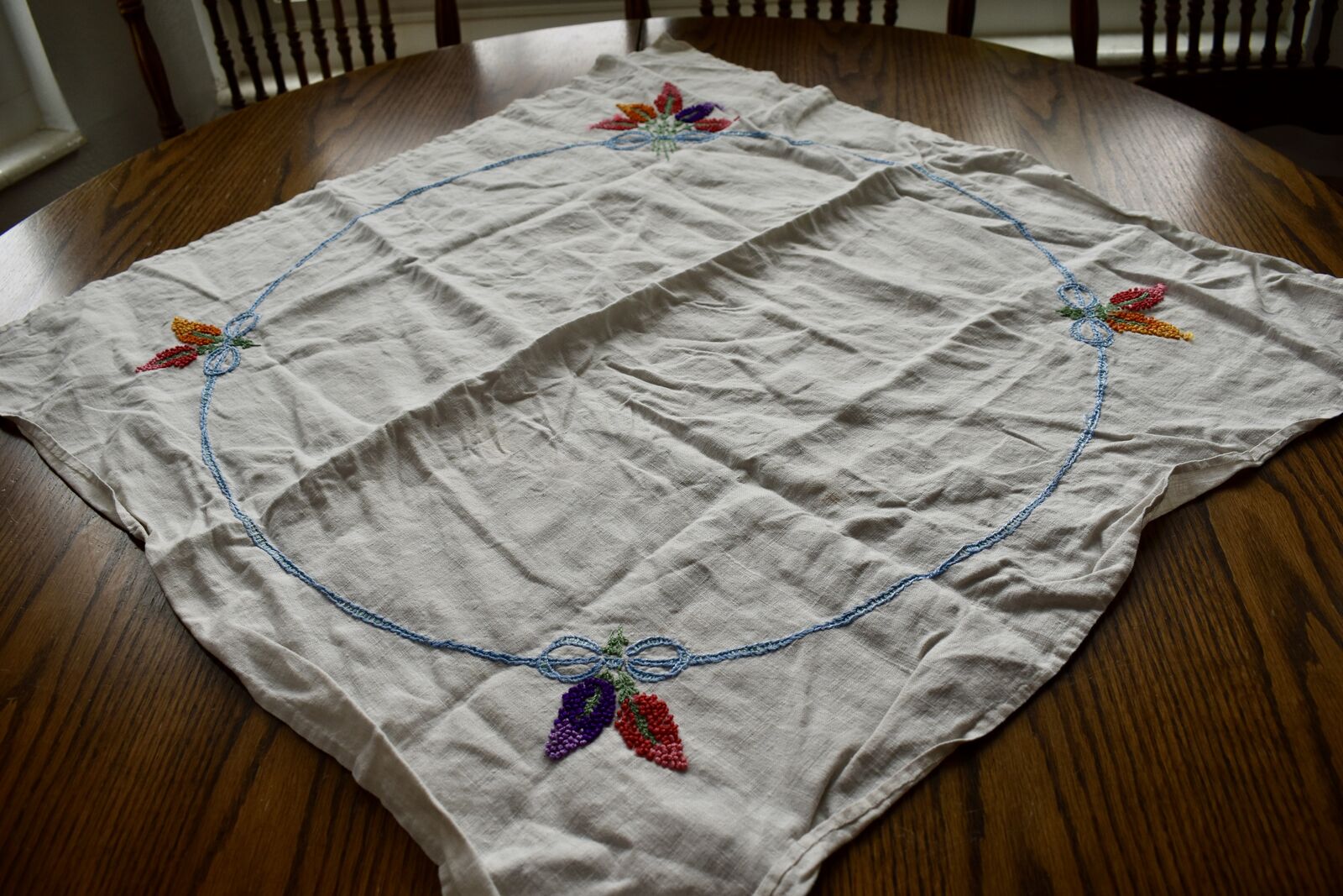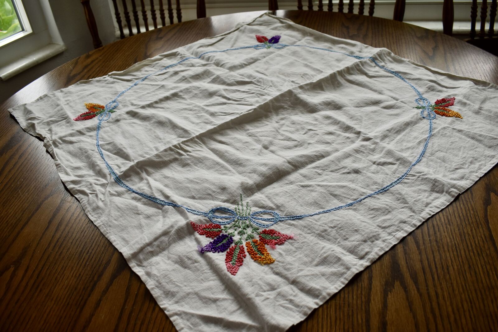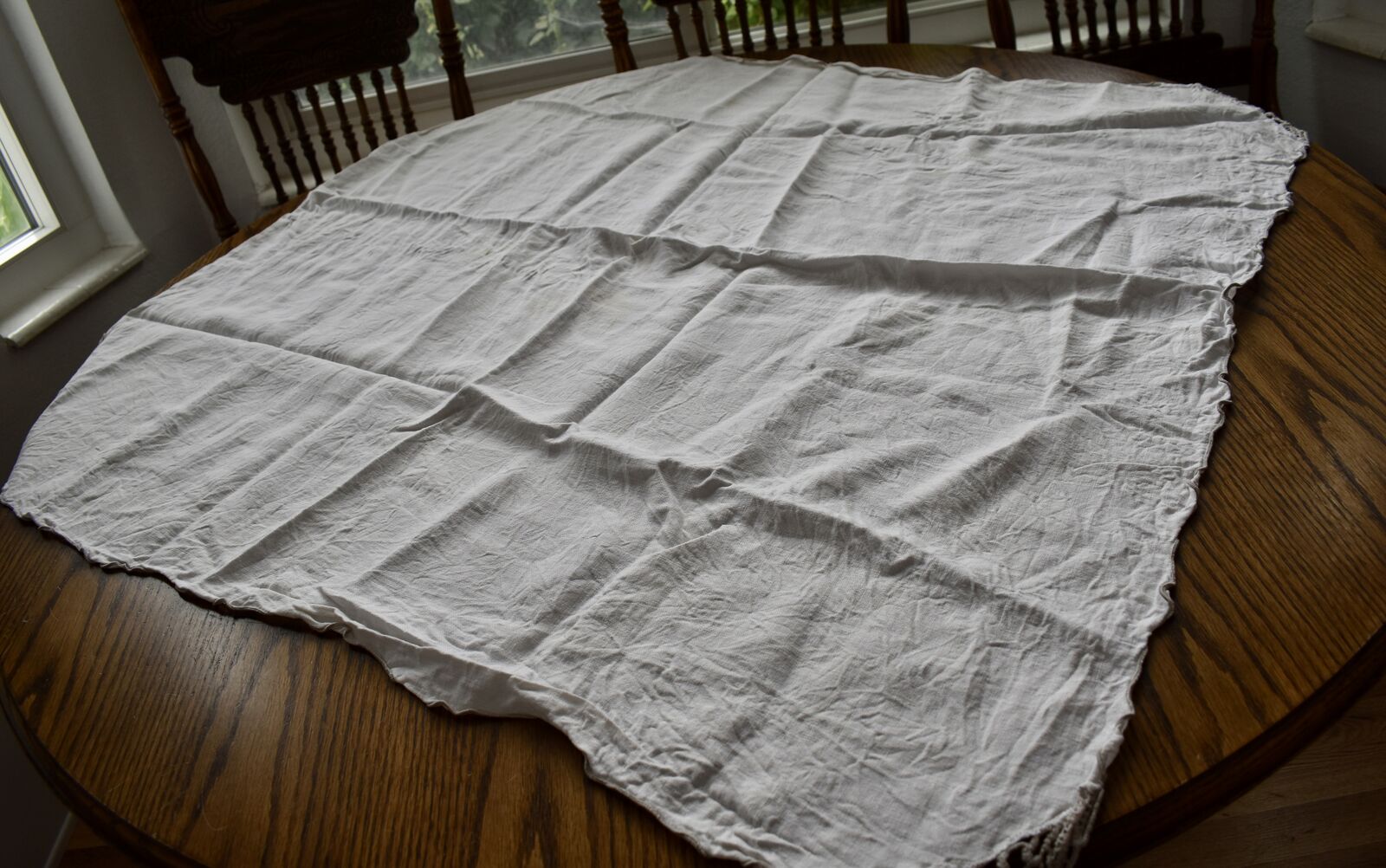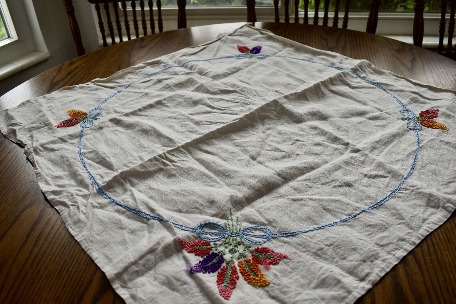 IT MEASURES… The Table that these pretty Table Cloth Linens were displayed on for the photos measures approx.48 inches across - ( That may give you a general idea of the size of each one. )