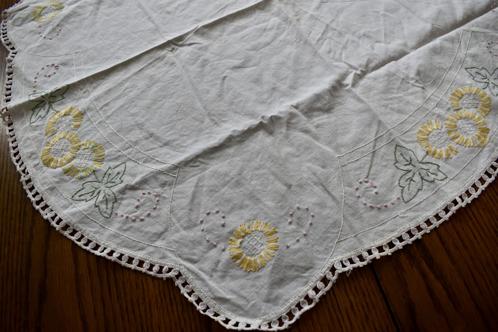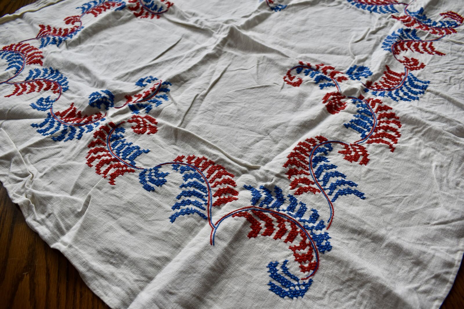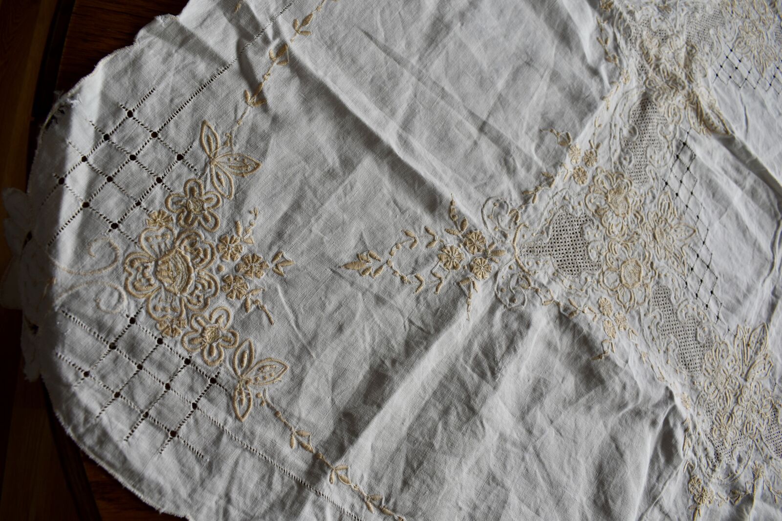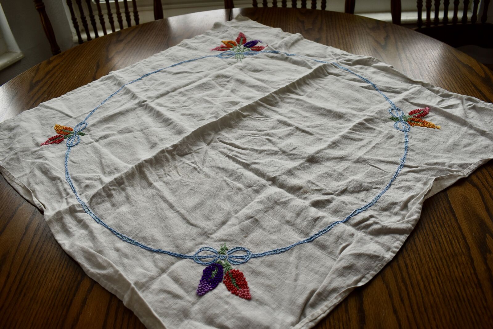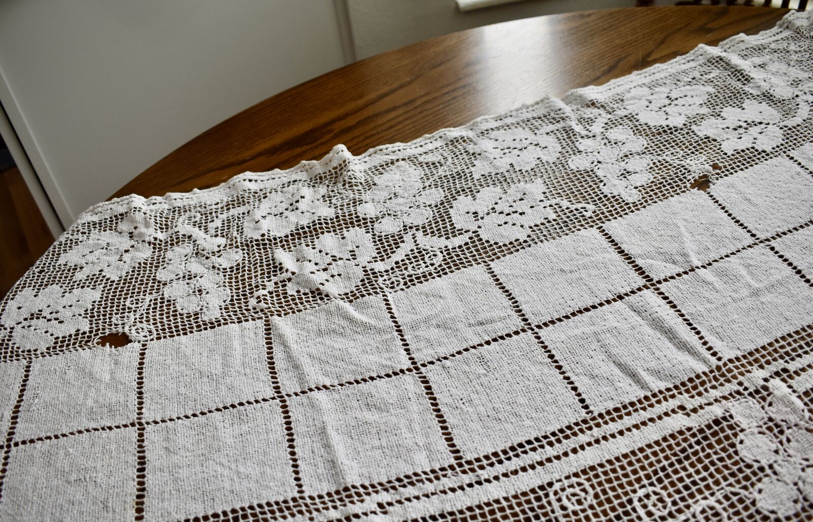IT MEASURES… The Table that these pretty Table Cloth Linens were displayed on for the photos measures approx.48 inches across - ( That may give you a general idea of the size of each one. )