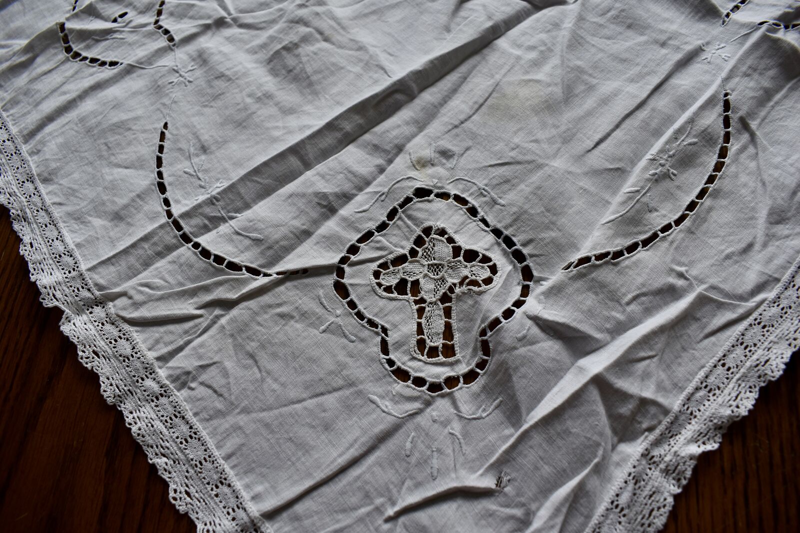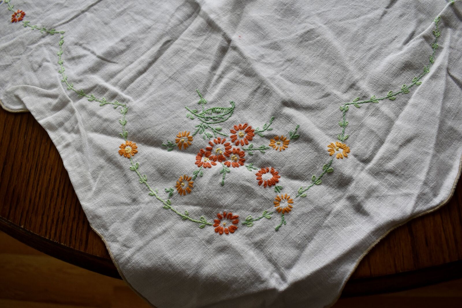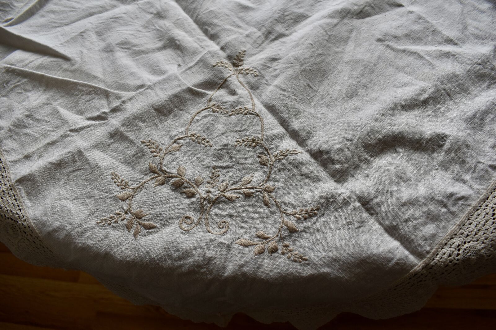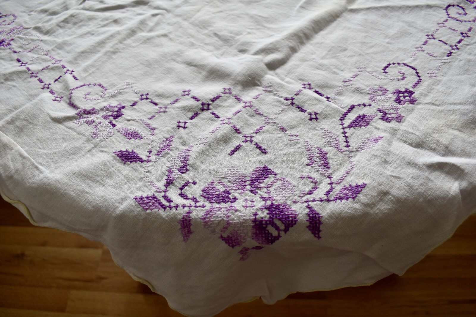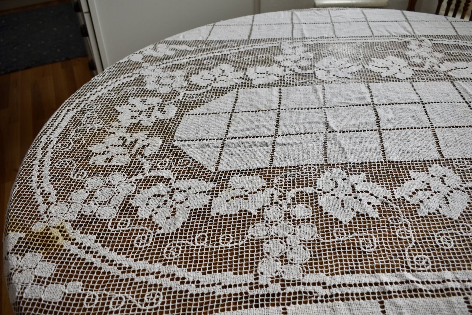 IT MEASURES… The Table that these pretty Table Cloth Linens were displayed on for the photos measures approx.48 inches across - ( That may give you a general idea of the size of each one. )