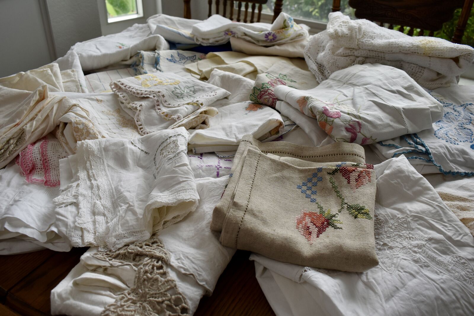 PLEASE NOTE... WE HAVE RECENTLY SOLD 4 or 5 OF THE PRETTY TABLE CLOTHS THAT YOU MAY SEE IN THE PHOTOS BUT WE STILL HAVE PLENTY TO CHOOSE FROM.