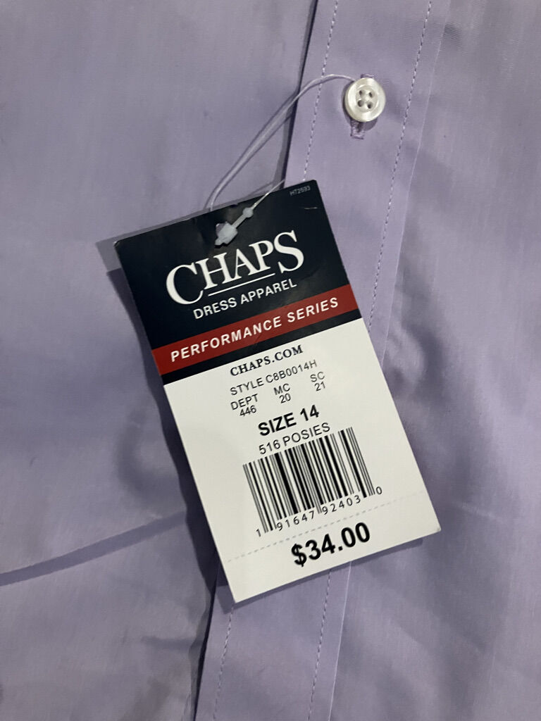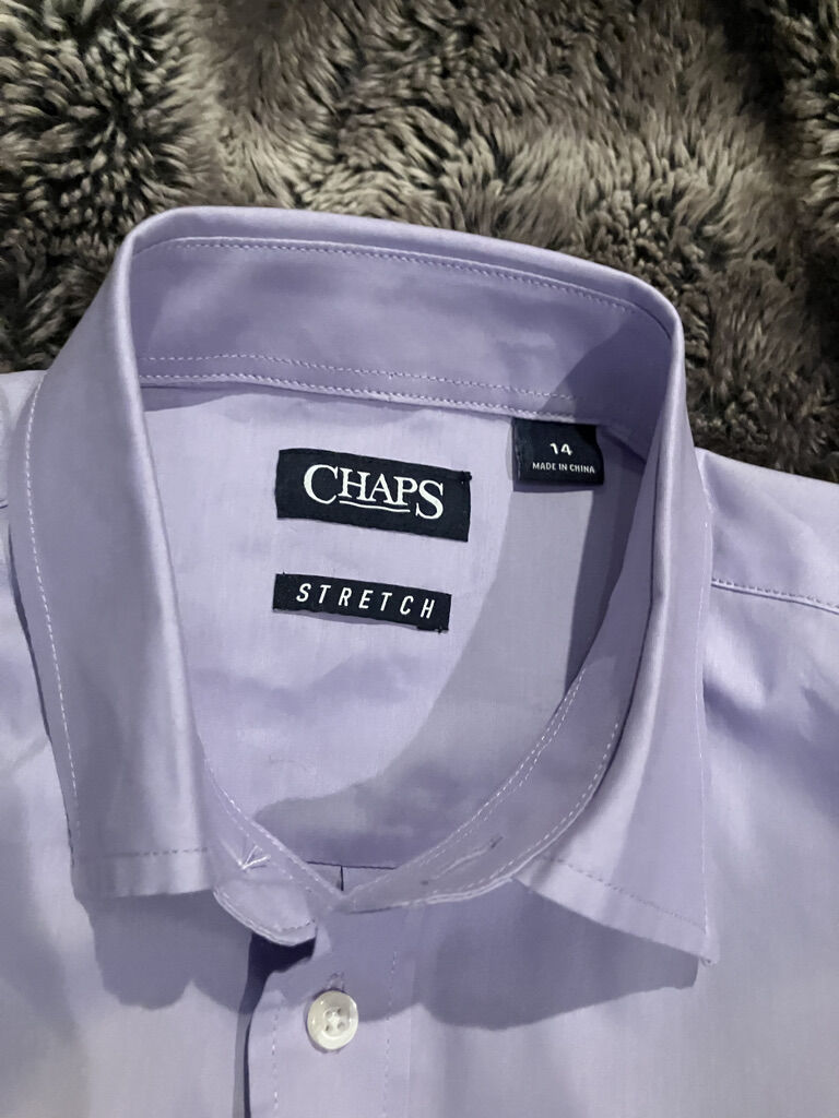 Chaps Purple Dress Shirt Size Large (14). Local pickup. NO CODES. Cash only. Please check my other listings and thank you for looking.