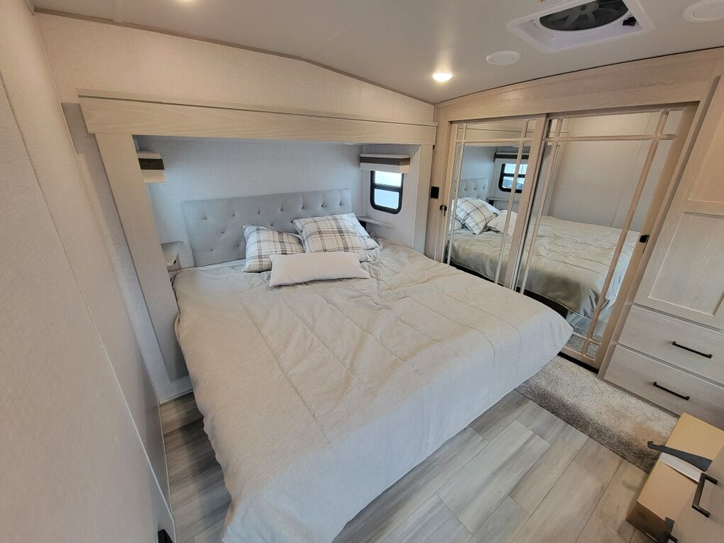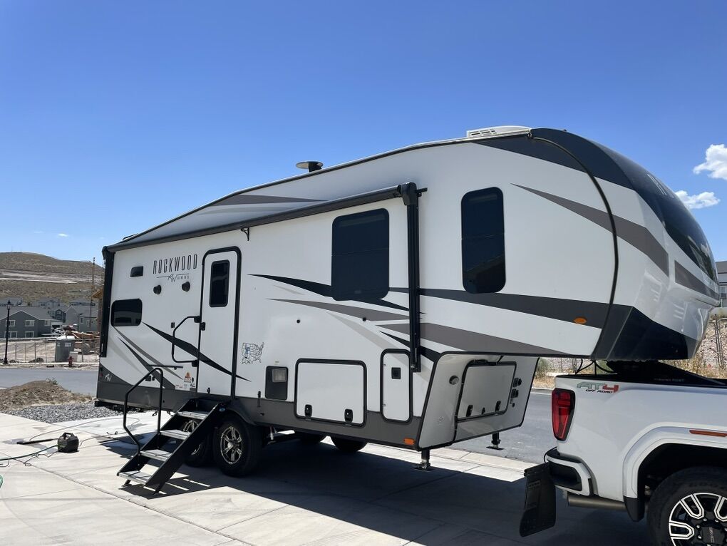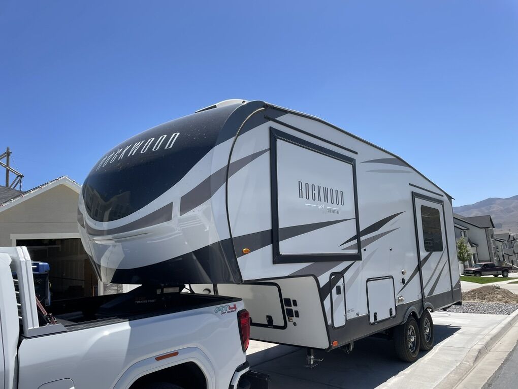 ApplePayShort fifth wheel with king bed. This RV has been amazing to take to all the little places yet have a fifth wheel luxuries. Everything works. Two slides, 2 air conditioners, 2 batteries, 2 solar panels, lots of storage. Outside grill included. Winter storage cover included. Manufacture specs below. Dry Weight 7,950 lbs GVWR 9,852 lbs Cargo Capacity 1,902 lbs Hitch Weight 1,252 lbs Exterior Height 13' 1 Exterior Length 28' 11 Exterior Width 8' 0 Fresh Water 54 gal Black Water 40 gal Gray Water 80 gal Awning Size 20 ft This is a great unit. Sad to see it go. The reason for selling is budget constraints.
