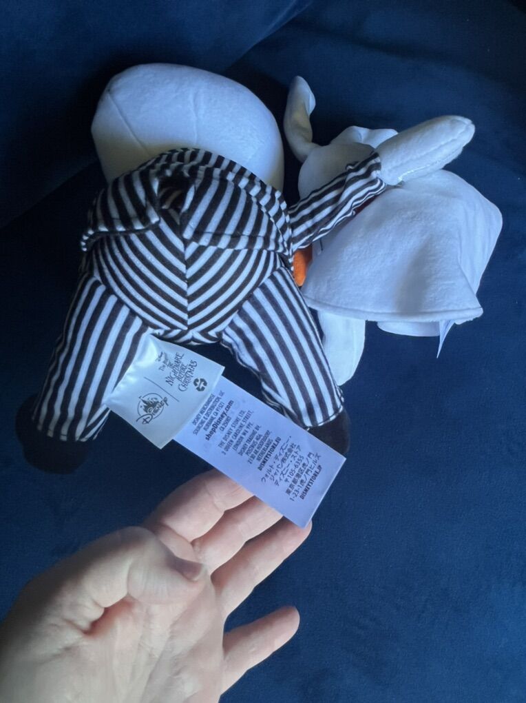 VenmoJack Skellington & Zero 8” plush. Jack has Velcro hands to hug. Zero is still attached to right hand of Jack but could be detached to pose separately.